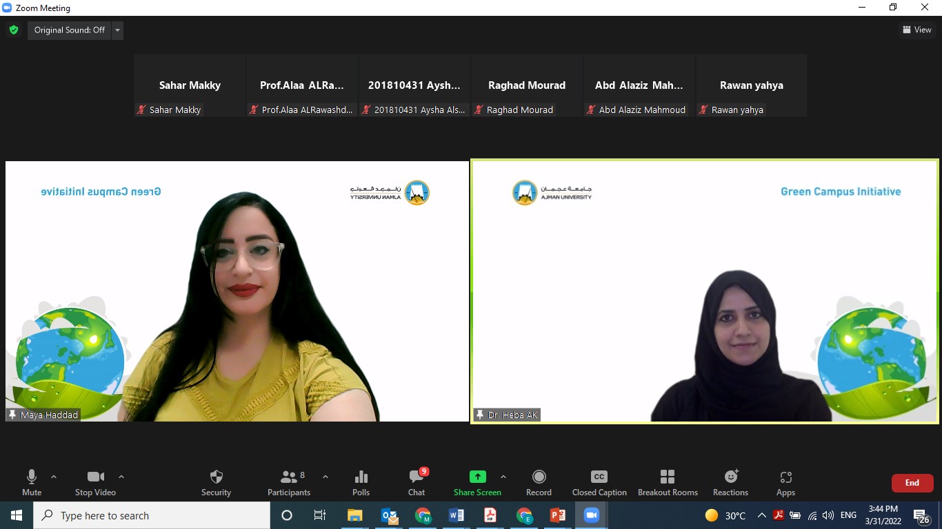 The Office of Environmental Health and Safety at Ajman University launched the Green Campus Initiative in parallel with the first ever MENA Climate Week hosted by the United Arab Emirates. The MENA Climate Week was a historic week-long event involving stakeholder engagement for climate action, and paved the road towards COP27 and COP28.