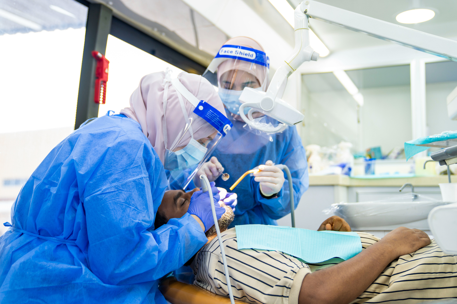 The Mobile Dental Clinic provided various services including comprehensive examinations for all participants and scaling treatments to preserve dental health and prevent related diseases. In cases where necessary, tooth extractions were performed, and temporary fillings were applied to maintain dental integrity. Moreover, dental care tools were distributed to all patients after their examinations, to promote oral and dental hygiene.