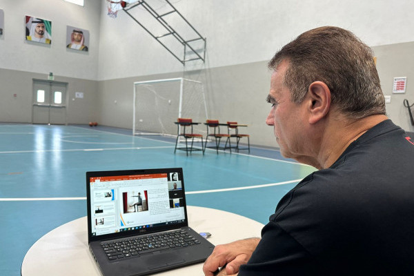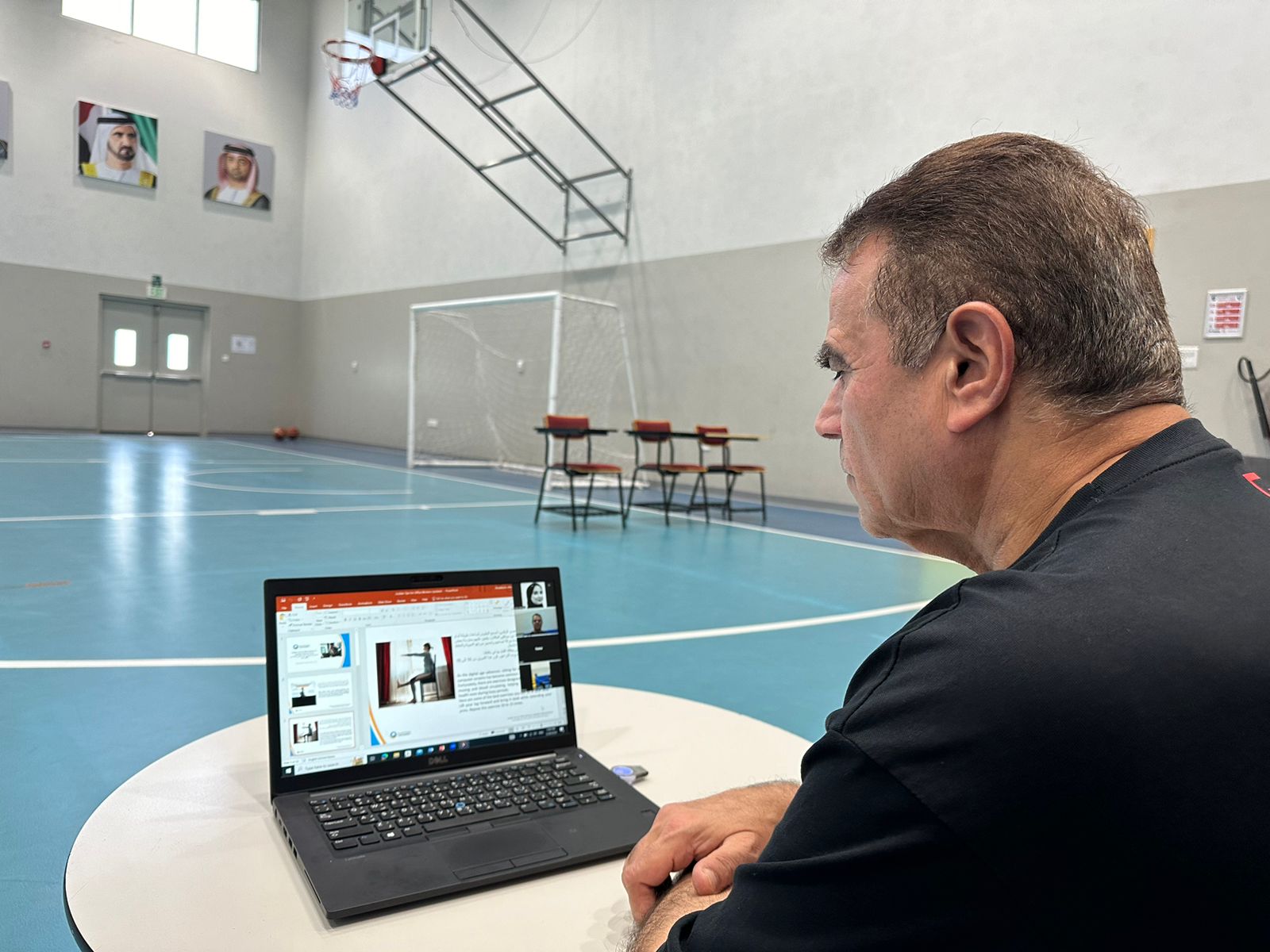 The Athletics Unit at Ajman University's Student Life Office organized a virtual workshop titled "Golden Tips for Office Workers to Maintain Physical Fitness," aimed at supporting the UN's Sustainable Development Goals related to health and well-being. Captain Abdulhameed Bakour, Sports Activities Supervisor, and Abdulkarim Al Mazmi, Receptionist at the Sports Complex, presented the workshop to employees of the Smart Services Development at Ajman's Municipality and Planning Department.