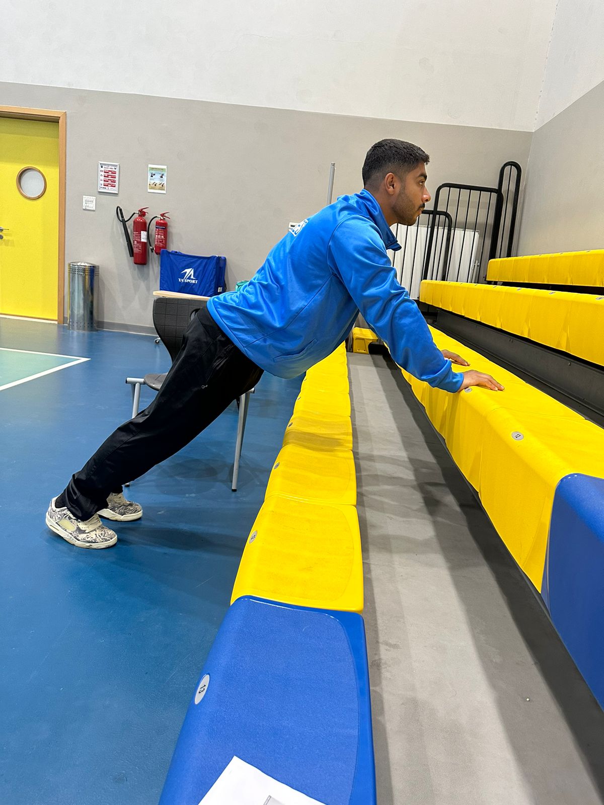 Regarding exercises, a set of beneficial exercises were introduced, including the well-known "40-15-5" rule, which advises sitting for 40 minutes, then standing for 15 minutes, followed by moving for 5 minutes. Additionally, the office pressure exercise targeting arm, chest, and shoulder strength was demonstrated, along with other helpful exercises requiring repetition from 10 to 15 times, contributing to enhancing physical fitness and reducing stress in the office environment.