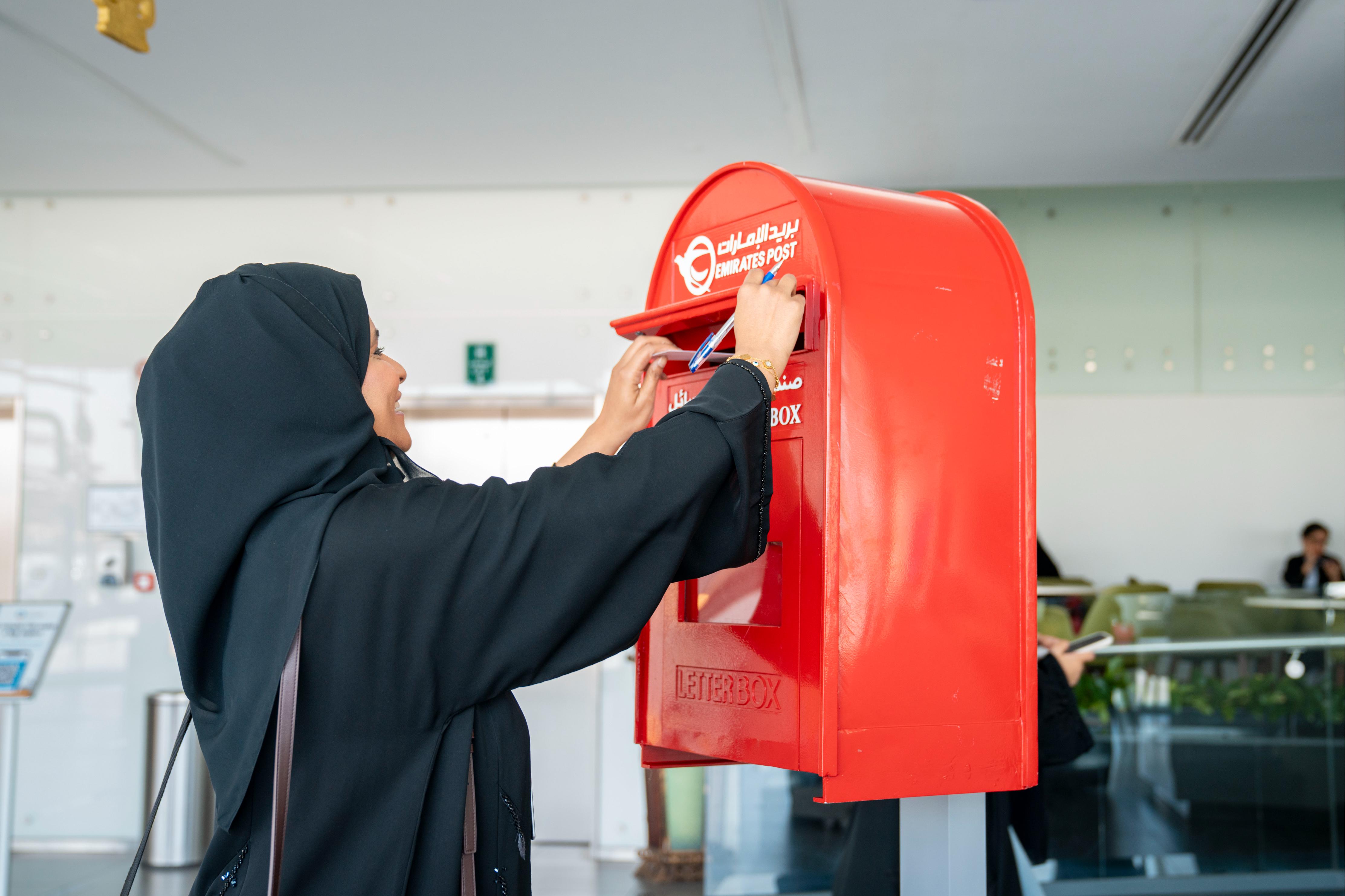 The inaugural initiative began with "Happiness Mail," during which participants composed messages intended for recipients eager to receive them, using postcards provided by Emirates Post. Afterwards, participants placed the postcards into the designated Emirates Post mailbox for distribution at a later date.