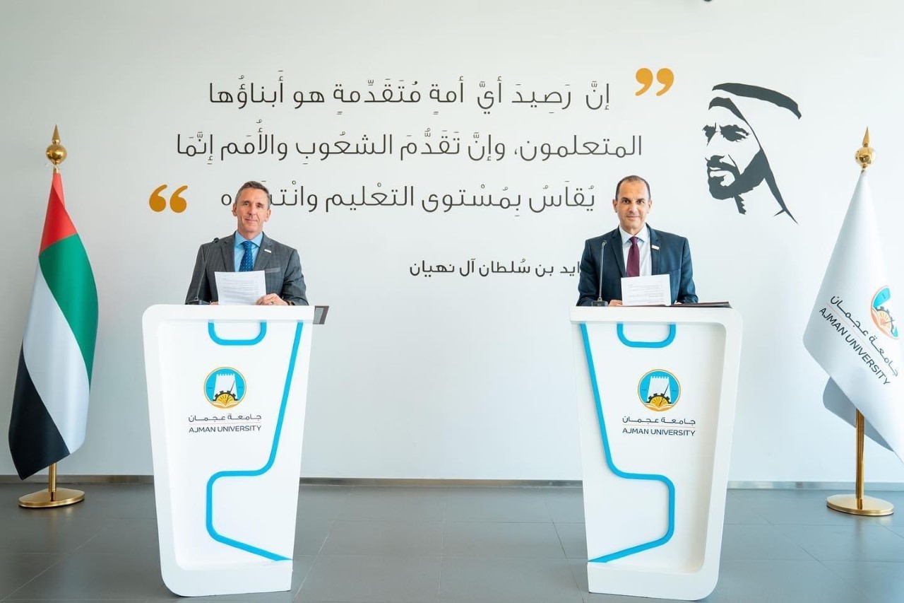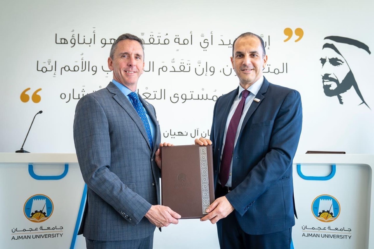 Ajman University College of Medicine signs MOU with University of Texas at Tyler School of Medicine. Dr. Brigham Willis, Founding Dean of UTT School of Medicine and Dr. Solomon Senok , Dean of Ajman University College of Medicine discussed the potential areas of collaboration including faculty and student exchange, joint research projects, summer electives and internships, faculty development and various other scholarly exchange and activities. Dr. Brigham met the college faculty and explored various opportunities with them , and also addressed the students in a Q&A sessions regarding the student opportunities at University of Texas.
