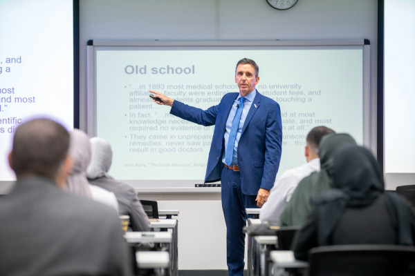 Ajman University College of Medicine was honored to host an inspiring seminar on active learning in medical education by the esteemed Dr. Brigham Willis, M.D., M.Ed., FAAP, Founding Dean, School of Medicine, Professor of Pediatrics, and Endowed Professor of Medical Education at University of Texas at Tyler. Dr. Willis, a distinguished figure in academia, shared his insights on the powerful impact of active learning in medical education. His seminar was a captivating journey into innovative teaching techniques which left us with a renewed passion for teaching and learning in medical education.
