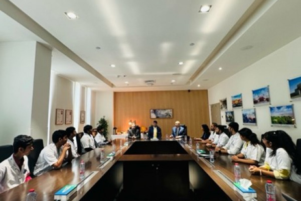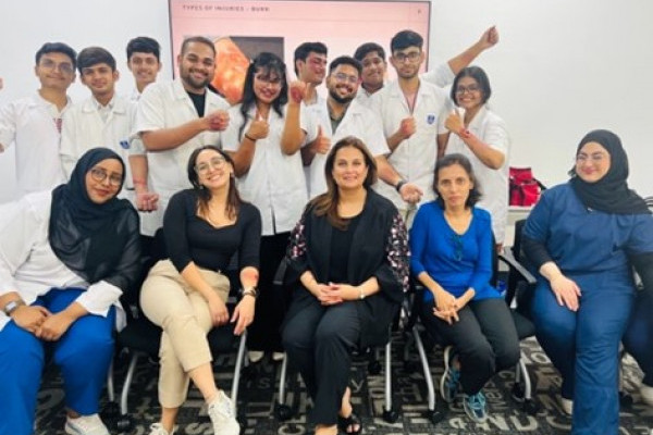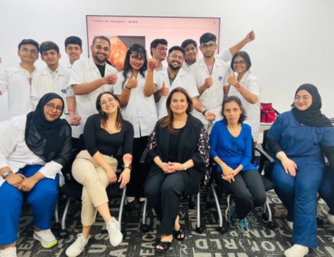 The Medicine Across Continents study tour, organized collaboratively by Ajman University’s College of Medicine and the OIAA Office from April 30 to May 5, offered students from Krishna Vishwa Vidyapeeth “Deemed to be University” a rich educational and cultural immersion. Through a combination of academic engagements and cultural explorations, students delved into the healthcare practices of the Emirates while experiencing the vibrant sites and culture of the UAE.The tour commenced with a welcoming meet and greet session, followed by visits to the Healthcare Simulation Clinical Competency Center (HSCCC) where students interacted with state-of-the-art medical simulators used to enhance clinical skills. Highlights included a dynamic clinical moulage workshop promoting collaboration and critical thinking, and visits to partner hospitals like the Saudi German Hospital for insights into hospital operations and medical education practices.Additionally, academic interactions with counterparts at the College of Medicine and cultural exploration of iconic landmarks and malls provided students with a transformative experience, fostering a deeper understanding of global healthcare and cultural diversity as they return to their home institution, enriched with enhanced medical knowledge and cherished memories.
