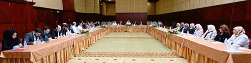 Afterwards each department gave a brief presentation about its services, activities, challenges and suggestions for future development. The first department to take the floor was the Student Affairs Department which introduced the audience to the various extracurricular and community engagement activities it organizes for students throughout the academic year. In this respect, it was announced that the process of establishing male and female student councils is underway in line with the norms and guidlines set by the Ministry of Higher Education and Scientific Research. Then, it was the turn of the University Facilities and Services Department which revealed a number of development projects AUST intends to carry out in order to enhance the look and feel the campus’ premises and improve the facilities and services offered to the students. Among these projects is the construction of a new hostel for female students, a multi-purpose sports center, besides the upgrading of clinics and laboratories and expansion of car parks by projecting a multistory parking area. It is expected that once completed these developments will be additional points of attraction for potential students who would join Ajman University.