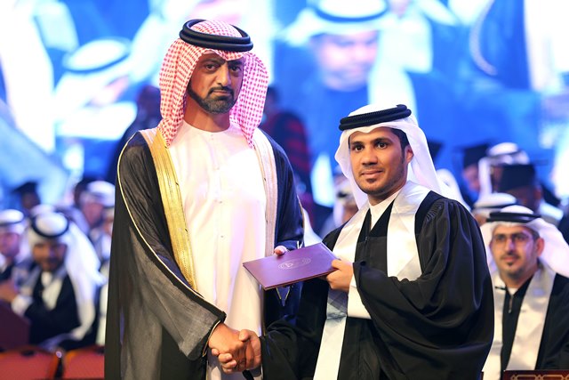 Under the patronage of His Highness Sheikh Humaid bin Rashid Al Nuaimi, Supreme Council Member, Ruler of Ajman and Chairman of the Board of Trustees of Ajman University of Science and Technology, AUST celebrated today, 14th October 2014, the graduation of the tenth batch under the wise leadership of His Highness Sheikh Khalifa bin Zayed Al Nahyan, President of UAE and the 23rd commencement ceremony since the inception of the university.