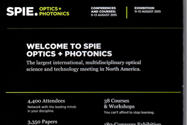 It has to be mentioned that the SPIE Optics and Photonics 60th international conference is the largest international, multidisciplinary optical science and technology meething in North American in which 3350 papers where presented, over 4400 attendees, 38 related courses and workshops were conducted, and 180 leading compaies were participated in the conference accombined exhibition to introduce the latest optical devices, components, materials, and technologies.