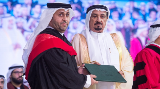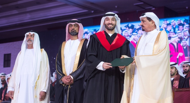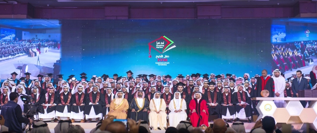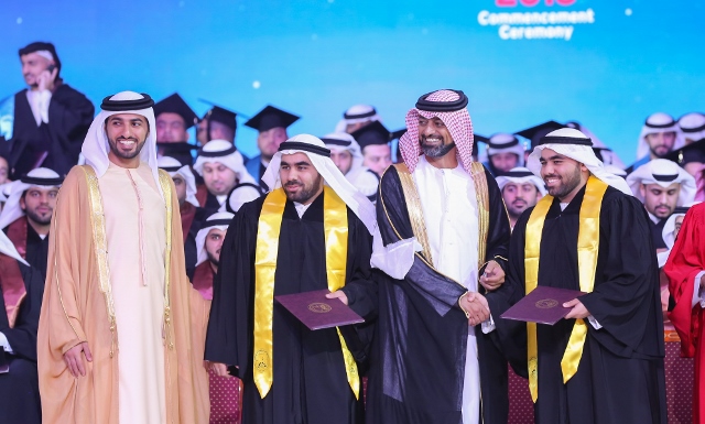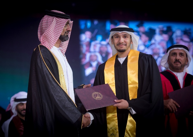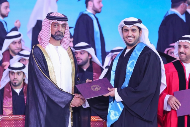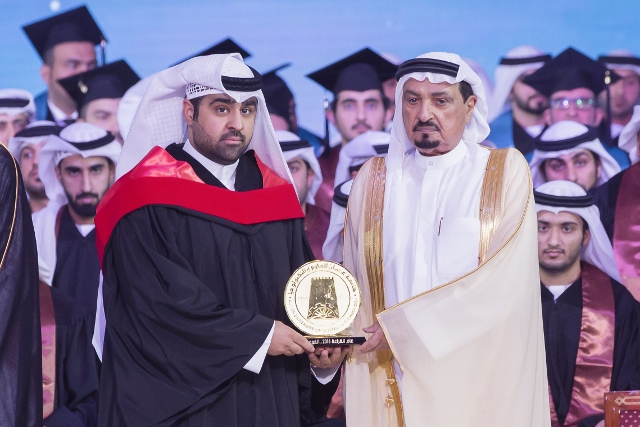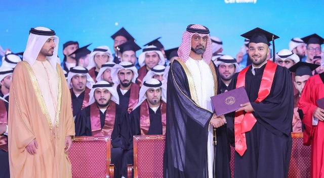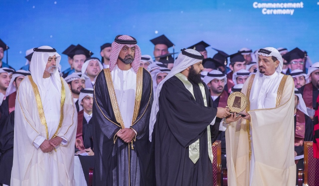 His Highness Sheikh Humaid bin Rashid Al Nuaimi, Supreme Council Member and Ruler of Ajman attended the second cohort of the 25th commencement ceremony at Ajman University. The “reading nation” batch pays homage to the wise leadership that leads the United Arab Emirates towards progress and prosperity in all fields, it is led by His Highness Sheikh Khalifa bin Zayed Al Nahyan, President of UAE ( May Allah Protect Him); His Highness Sheikh Mohammed Bin Rashid Al Maktoum, Vice-President and Prime Minister of UAE and Ruler of Dubai (May Allah Protect Him); His Highness Sheikh Mohammed bin Zayed Al Nahyan, Crown Prince of Abu Dhabi and Deputy Supreme Commander of the Armed Forces along with His Highnesses the members of the Supreme Council and Rulers of the Emirates.