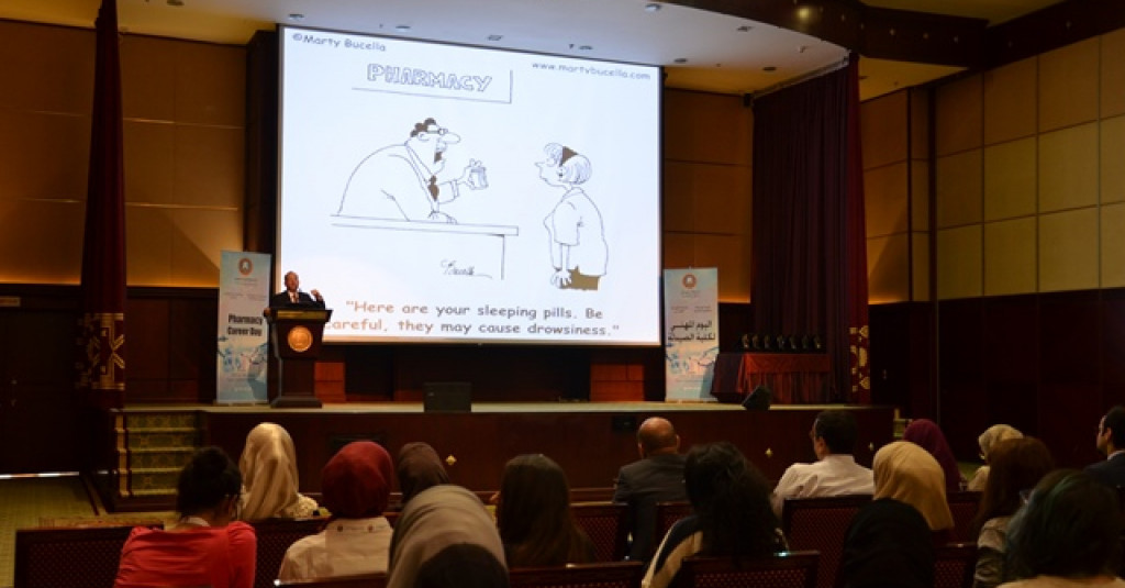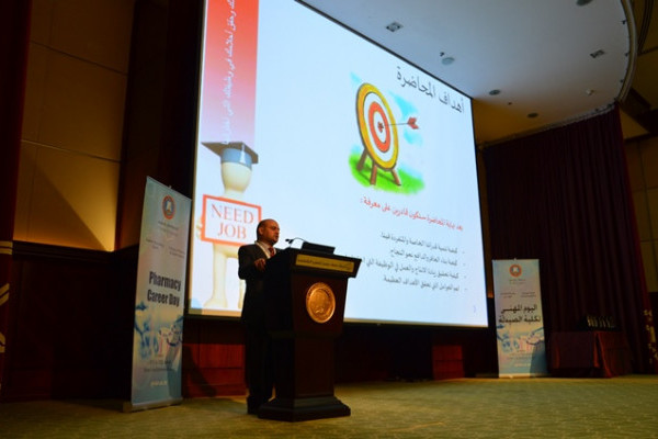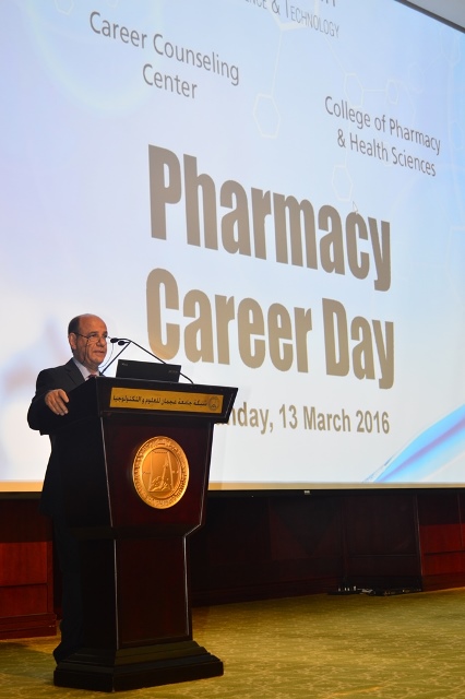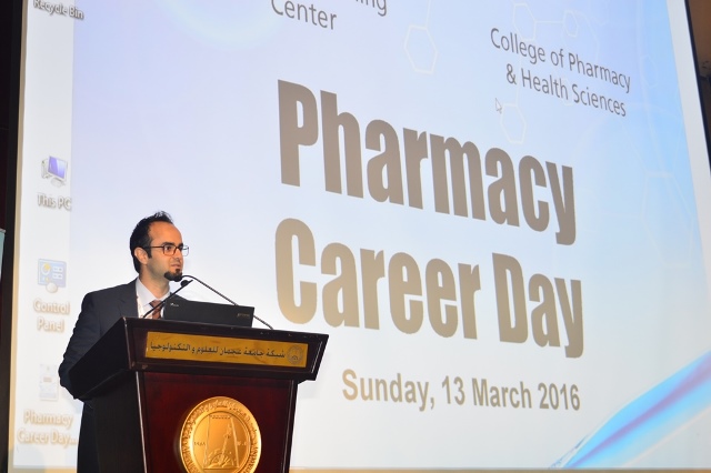 The lectures covered all pharmacy discipline that are available for UAE pharmacist as a profession. In his speech, Dr. Basil Sarhan old alumni shared the audience his experience and talked about the chances to work in pharmaceutical companies and the skills needed in marketing field. While, Dr. Dalia Murad from the Ministry of Health gave lecture about the recent and updated regulation for pharmacy licenses in UAE. Dr. Rana shared her experience and talked about challenges in community pharmacy while Dr. Sharif talked about the hospital pharmacy experience. Dr. Rana Sammor explained post-graduate study options