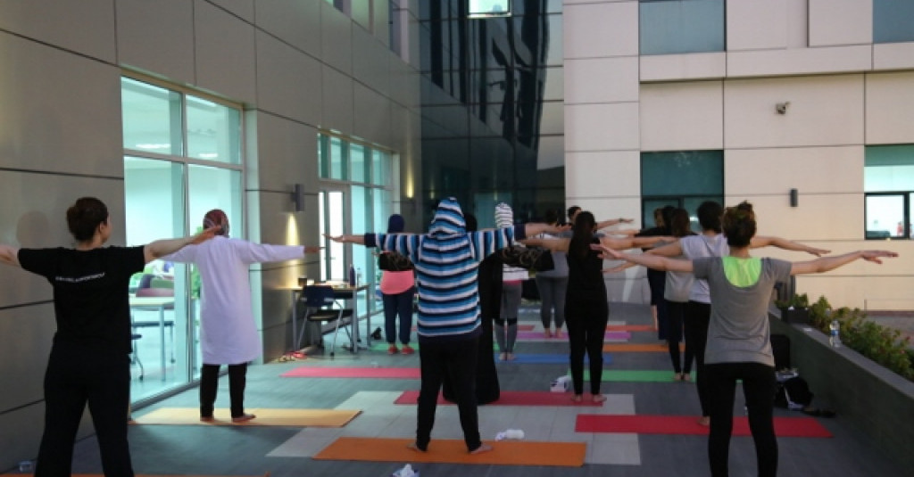 Community Service Department at Ajman University organized a Yoga training session for the female students residing at the accommodations on campus. In its efforts to ensure a physically and mentally healthy environment for its students, the management regularly holds activities for the residing students.