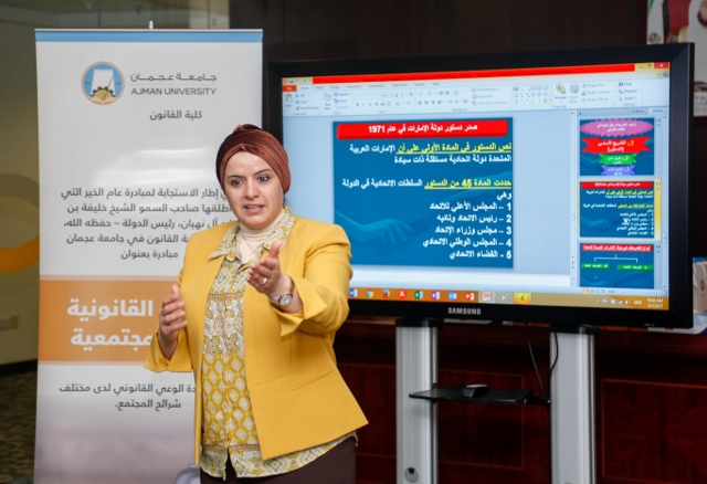 Implementing the announcement of His Highness Sheikh Khalifa bin Zayed Al Nahyan, President of UAE, Allah Protect Him, that the year 2017 is the Year of Giving, and within the initiatives of the Government of the Emirate of Ajman for the year of Giving, the College of Law in Ajman University has launched the Initiative. It is called Legal Culture a Societal Necessity, in order to spreading the legal culture among people in the Society. To spread this awareness College of Law received students from the Abu Obaida Ben Jarrah School.