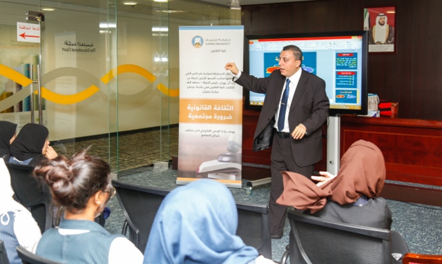 Dr. Nasr Abul-Fotouh, academic member of the faculty, gave a lecture entitled "The Role of Law in the Establishment and Development of the Society”. In his lecture Dr. Abul Fotoh handled the definition of the law and its importance for the society, various types of laws, and the role of the federal constitution in the establishment of the state. The lecture included a presentation as well as the screening of documentaries on the Federal Constitution and the establishment of the UAE. Finally, questions were asked and prizes were awarded to students who answered the questions.