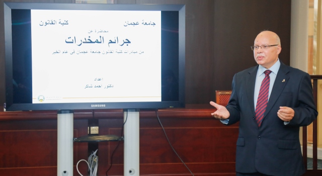 In implementation of this initiative, the College organized a lecture on "Drug Crimes“ delivered by Dr. Ahmed Shaker, Faculty Member, College of Law, it was well attended by a group of academics and administrators at the National School in Ajman.