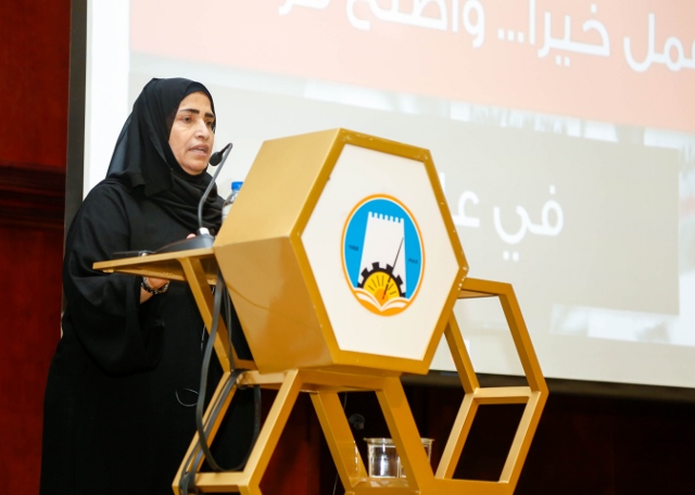 Dr. Amna Khalifa Al Ala, Chairwoman for Ajman Women Business Council delivered a lectures on the role and impact of volunteering. She was speaking at an event “Do Good to Make a Difference”. Dr. Abdul Haq AL Nuaimi, Vice-Chancellor for Advancement and Communication along with Saif Ibrahim Al Nuaimi, Director Red Crescent Ajman, attended the event along with other members of AU community.