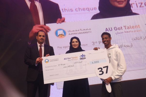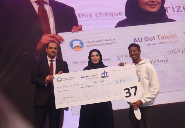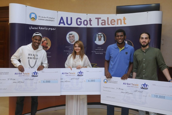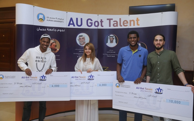 Two exceptionally talented students won the final for the first ever ‘Ajman University got talent’ event held at the campus last week. Awarded for their remarkable singing skills, the students were handed a prize of AED 10,000 by Dr. Karim Seghir, AU Chancellor. The runner ups were Rose Yanbeiy, voted for singing and Abdul Rahman Awad for his talent in rapping, they were awarded AED 6000 and AED 4000 respectively.