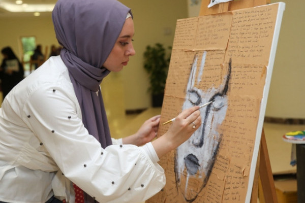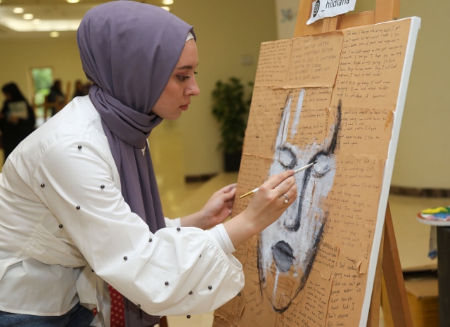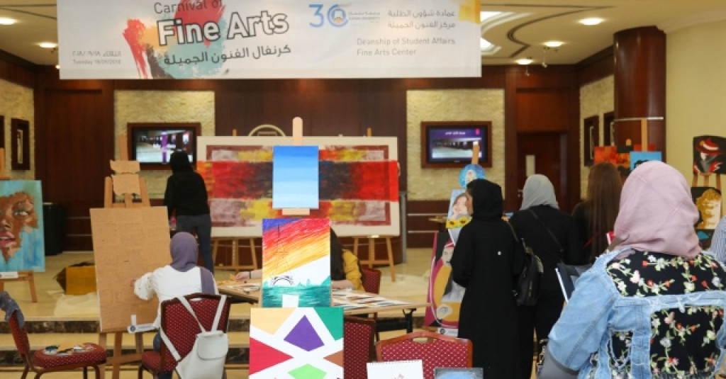 The Fine Arts Center of the Deanship of Student Affairs at Ajman University held a carnival of fine arts in which 50 students shared more than 500 paintings and works of art. More than 300 students attended the Carnival from different colleges.