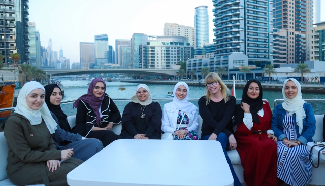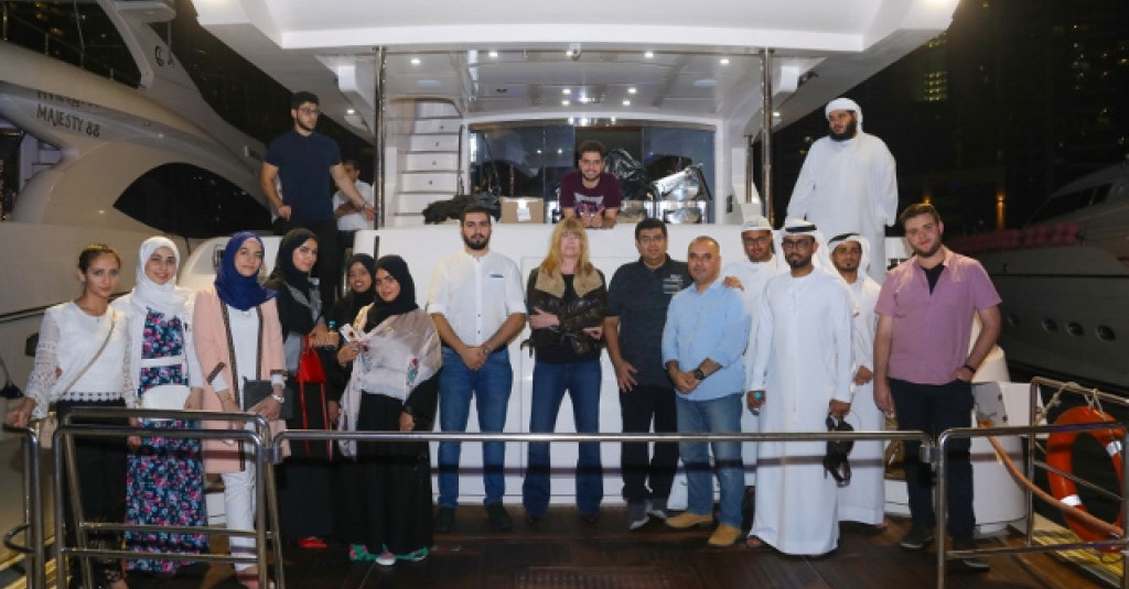 The cruise was launched from Dubai Marina for boats and yachts, and lasted for two hours, concluding with a sunset dinner between students and alumni.