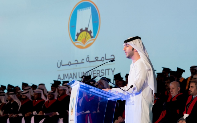 Under the patronage of H.H. Sheikh Humaid bin Rashid Al Nuaimi, Supreme Council Member and Ruler of Ajman and Chairman of the Board of Trustees of Ajman University, H.H. Sheikh Ammar bin Humaid Al Nuaimi, Crown Prince of Ajman and Chairman of the Ajman Executive Council, attended the graduation ceremony of the first class of the 27th batch of Ajman University graduates, which carried the theme 'Year of Zayed'.