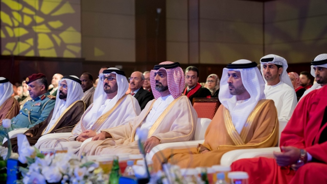The ceremony was attended by Sheikh Abdulaziz bin Humaid Al Nuaimi, Chairman of the Tourism Development Department; Hussain bin Ibrahim Al Hammadi, Minister of Education; Abdullah Amin Al Shurafa, Advisor to the Emiri Court in Ajman, as well as several sheikhs, members of the University’s Board of Trustees, chairmen and directors of government departments, directors of national universities, along with several members of the diplomatic corps, college deans, professors, dignitaries of the country, parents of students, and the university’s guests who are senior figures and officials.