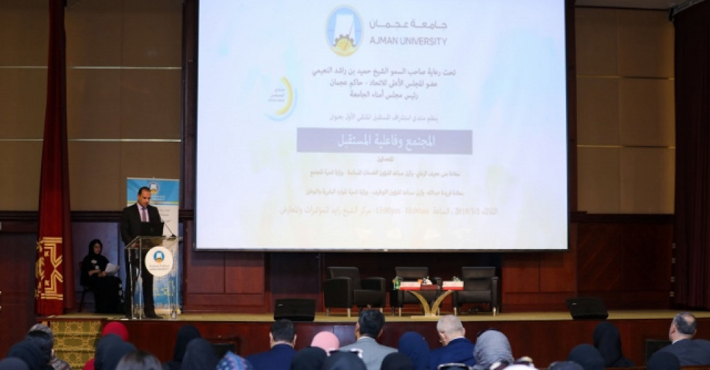 The Future Foresight Forum at Ajman University organizes its first symposium titled “Society and Future forms of Agency”. The main speakers were Ms. Mona al Zaabi, Assistant Deputy Minister of the Ministry of Social Development and Ms. Fareda Abdullah Assistant Deputy Minister of the Ministry of Human Resources and Emiratization along with insightful speeches by other dignitaries.
