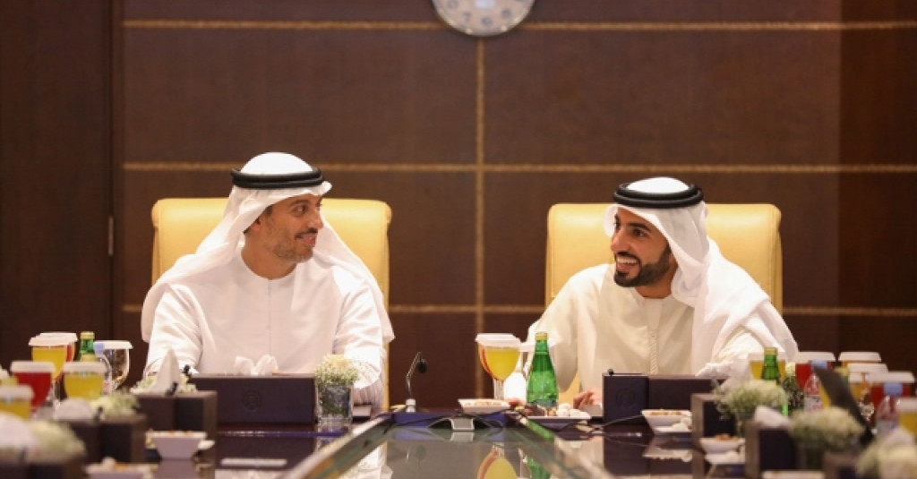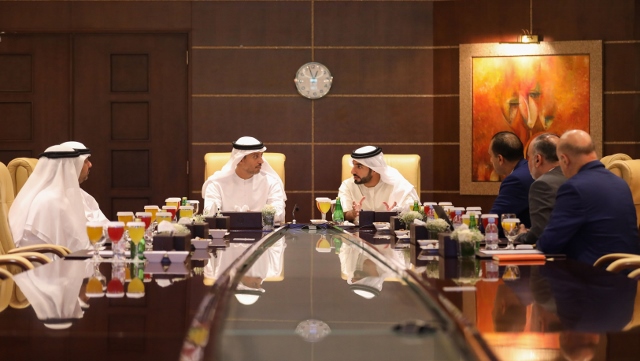 Dr. Ahmed bin Abdullah Al Falous, Minister of State for Higher Education and Advanced Skills, visited Ajman University and was received by Sheikh Rashid Bin Humaid Al Nuaimi, Vice Chairman of the Board of Trustees of the University and Chairman of the Executive Committee and Dr. Karim Seghir, University Chancellor.