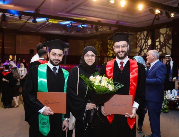 H.H. Sheikh Humaid bin Rashid Al Nuaimi, Supreme Council Member and Ruler of Ajman and President of the Board of Trustees of Ajman University, and H.H. Sheikh Ammar bin Humaid Al Nuaimi, Crown Prince of Ajman and Chairman of the Ajman Executive Council, attended the graduation ceremony of the first group of graduates of the 28th batch of Ajman University students, which was held at the Sheikh Zayed Conference and Exhibition Centre.