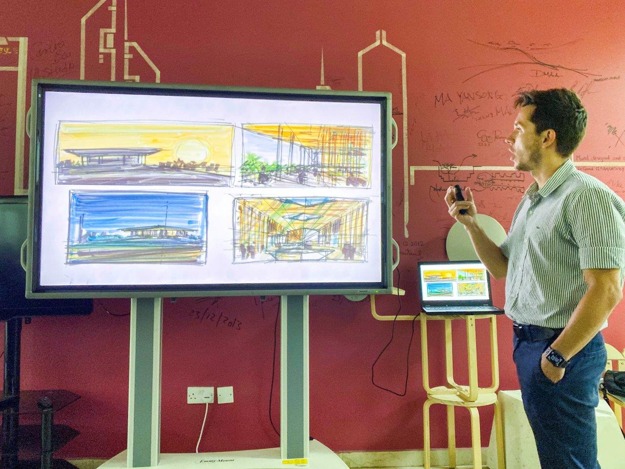 This time, two architects from Foster + Partners visited the department of architecture at the College of Architecture, Art & Design and delivered a valuable public lecture at Ajman University.