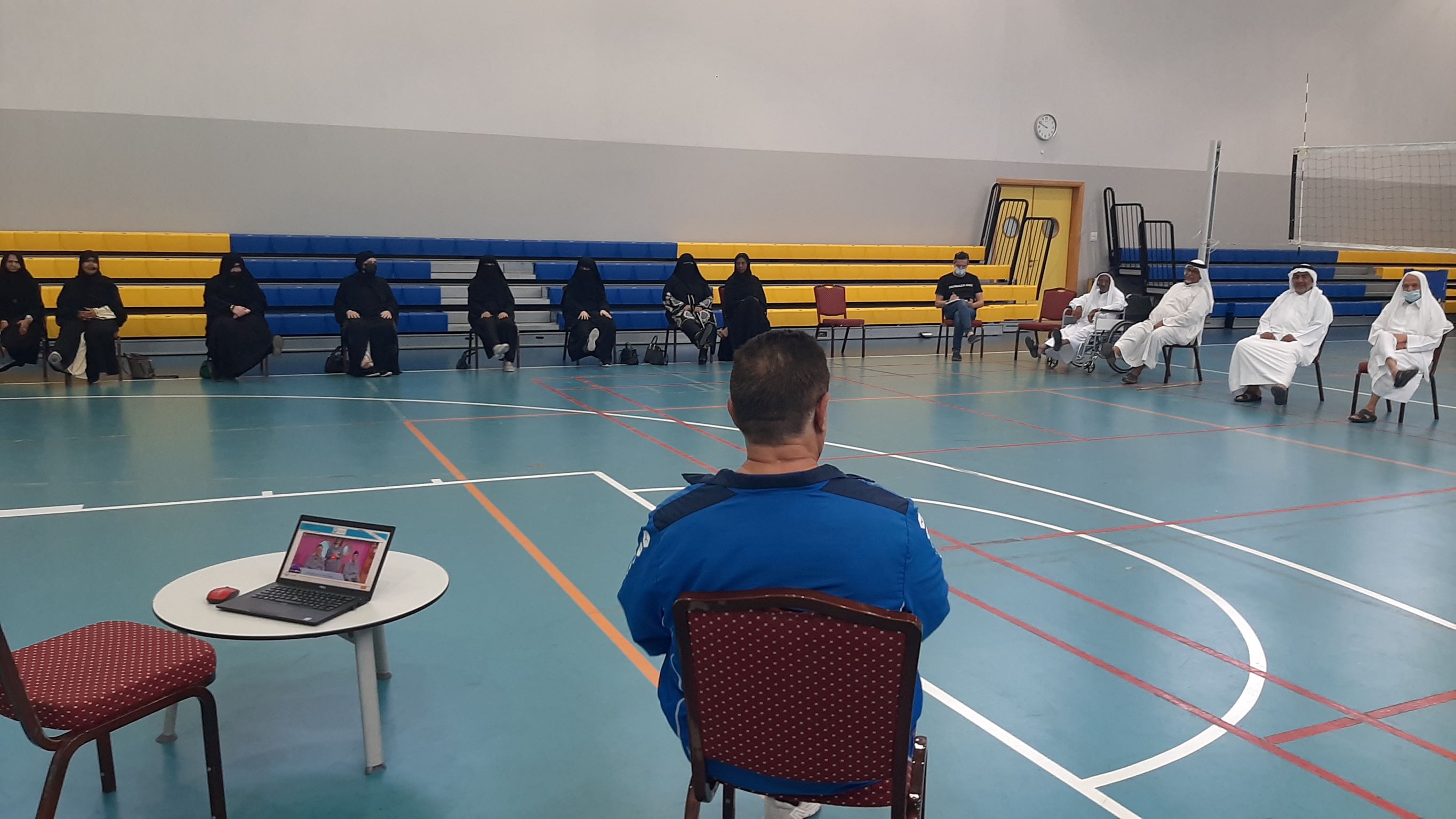 The event started off with a discussion between the team, coordinated by Mr. AbdulHamid Bakour, Sports Activities Supervisor at AU. The discussion focused on issues related to healthy aging, including how to exercise as you age and tips for maintaining good health.