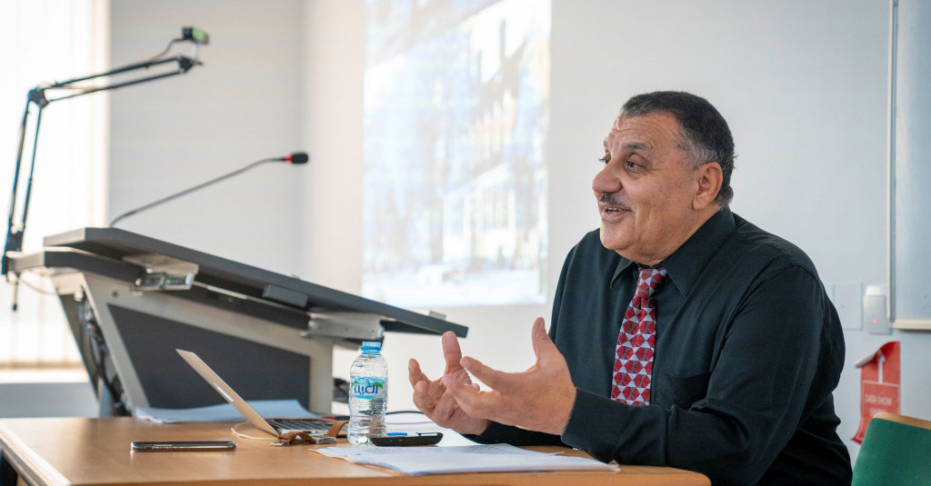 Dr. Nezar AlSayyad, Distinguished Professor Emeritus, Architecture, Planning and Urban History in the College of Environmental Design at the University of California, Berkeley, and a member of the Healthy and Sustainable Building Research Center (HSBRC) at Ajman University (AU), delivered a lecture about Manufacturing Heritage and the End of Tradition: Tourism and Consumerism in the Global Age.