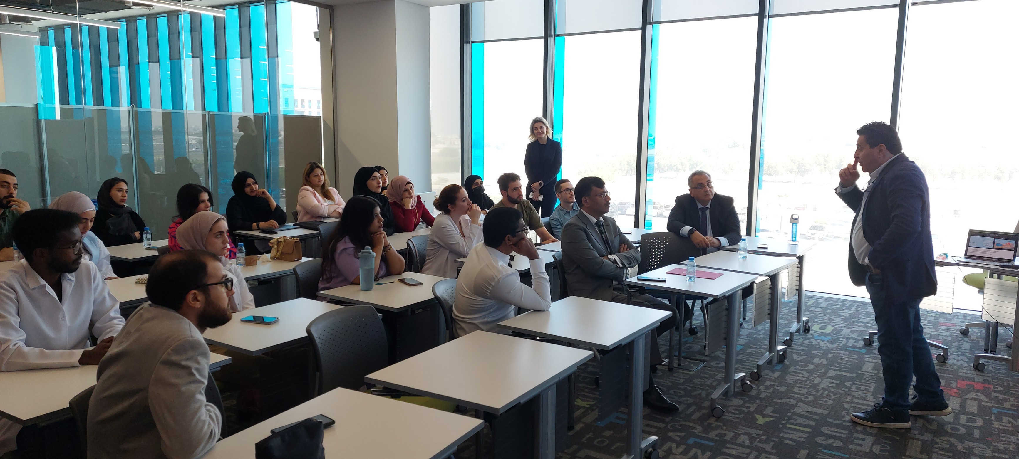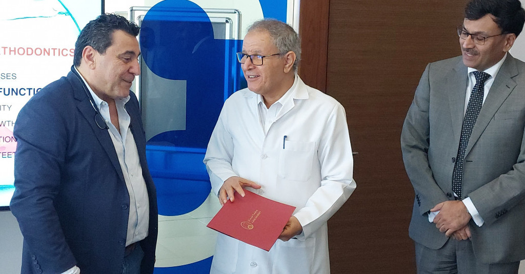 The College of Dentistry at Ajman University organized a workshop titled “Myofunctional therapy from Dysfunction to Harmony in Clinical Practice”, presented by Dr. Fadi Antar, Clinical Instructor at the Paediatric Dental Department at the Lebanese University. The workshop was attended by a large number of faculty members and postgraduate students from the College of Dentistry.