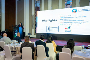 Ms. Maya Haddad, Manager of Ajman University’s Office of Sustainability was one of the speakers at the Summit. Her session was titled ‘Impact of ESG (Environment, Social and Governance) standards on the operations of higher education sector in the United Arab Emirates.’ During the presentation, Ajman University was discussed as a case study.