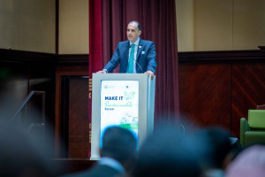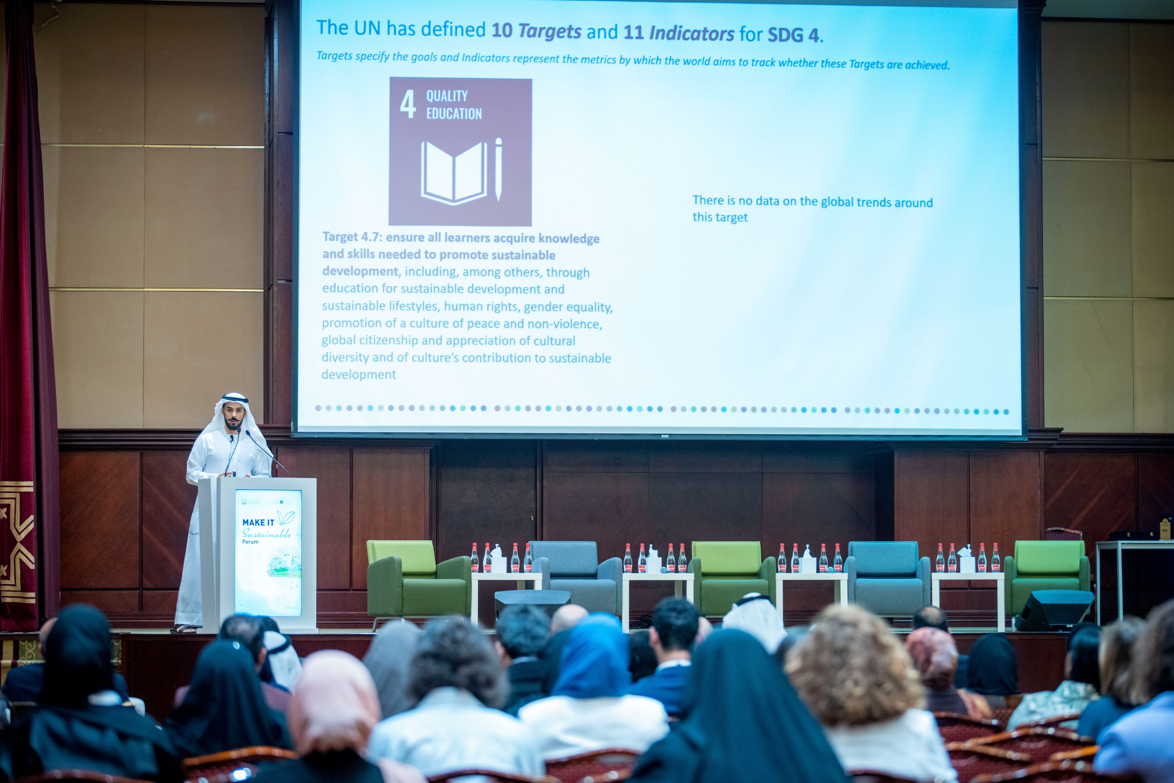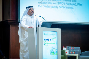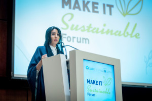 Under the patronage of H.H. Sheikh Humaid Bin Rashid Al Nuaimi, Member of the UAE Supreme Council and Ruler of Ajman, Ajman University proudly hosted the Make it Sustainable Forum in partnership with the UAE Ministry of Climate Change and Environment on April 26 at the Sheikh Zayed Center for Conferences and Exhibitions.