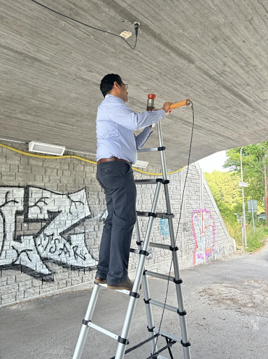 Dr Nassr undertook a field trip to KTH bridge, which is real-time monitored by KTH SHM Lab. During this field excursion, Dr Nassr conducted a hammer excitation test and meticulously collected the associated data.