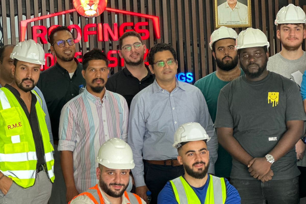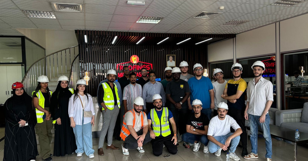 The Department of Civil Engineering at Ajman University organized a visit to the Middle East Roofing Factory with the supervision of Dr. Ahmed Godat, Dr. Amr Nassr, and Engineer Saeed Hamdan.