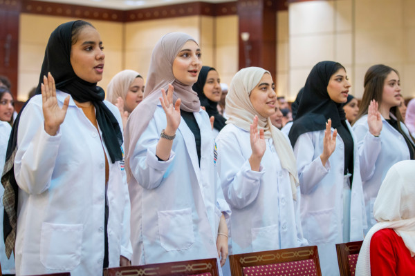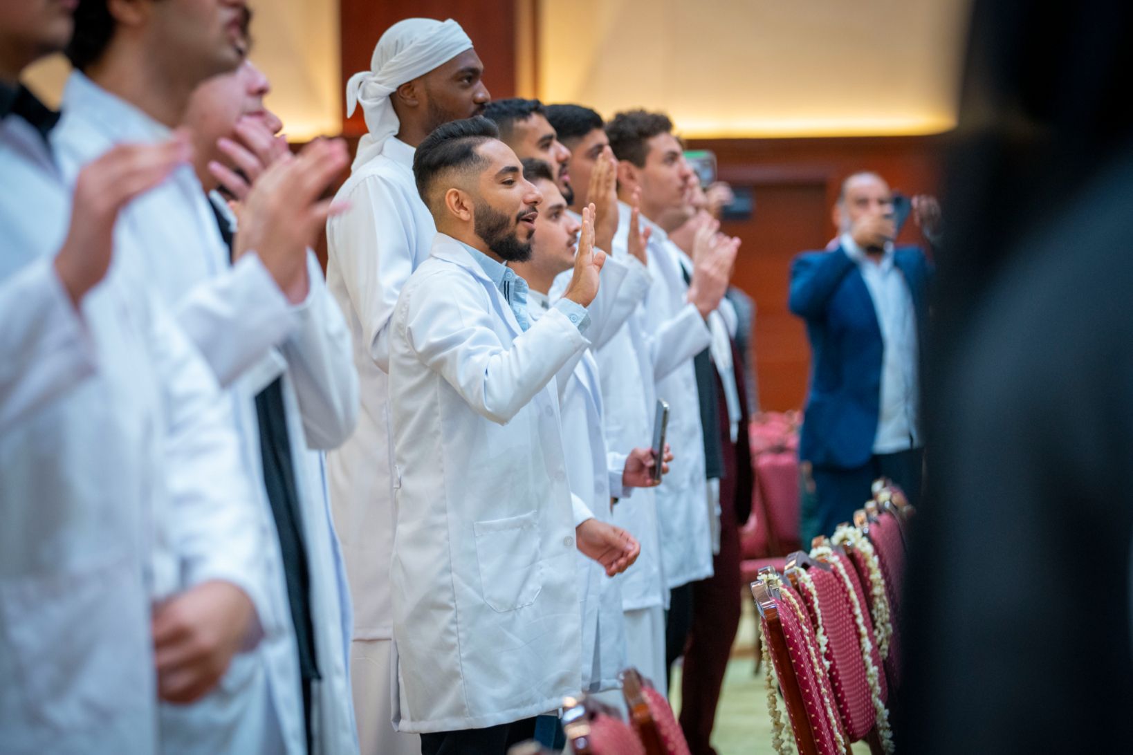 Students proudly donned their white coats and recited the professional oath, marking the beginning of their educational and professional paths, pledging to uphold the highest healthcare standards.