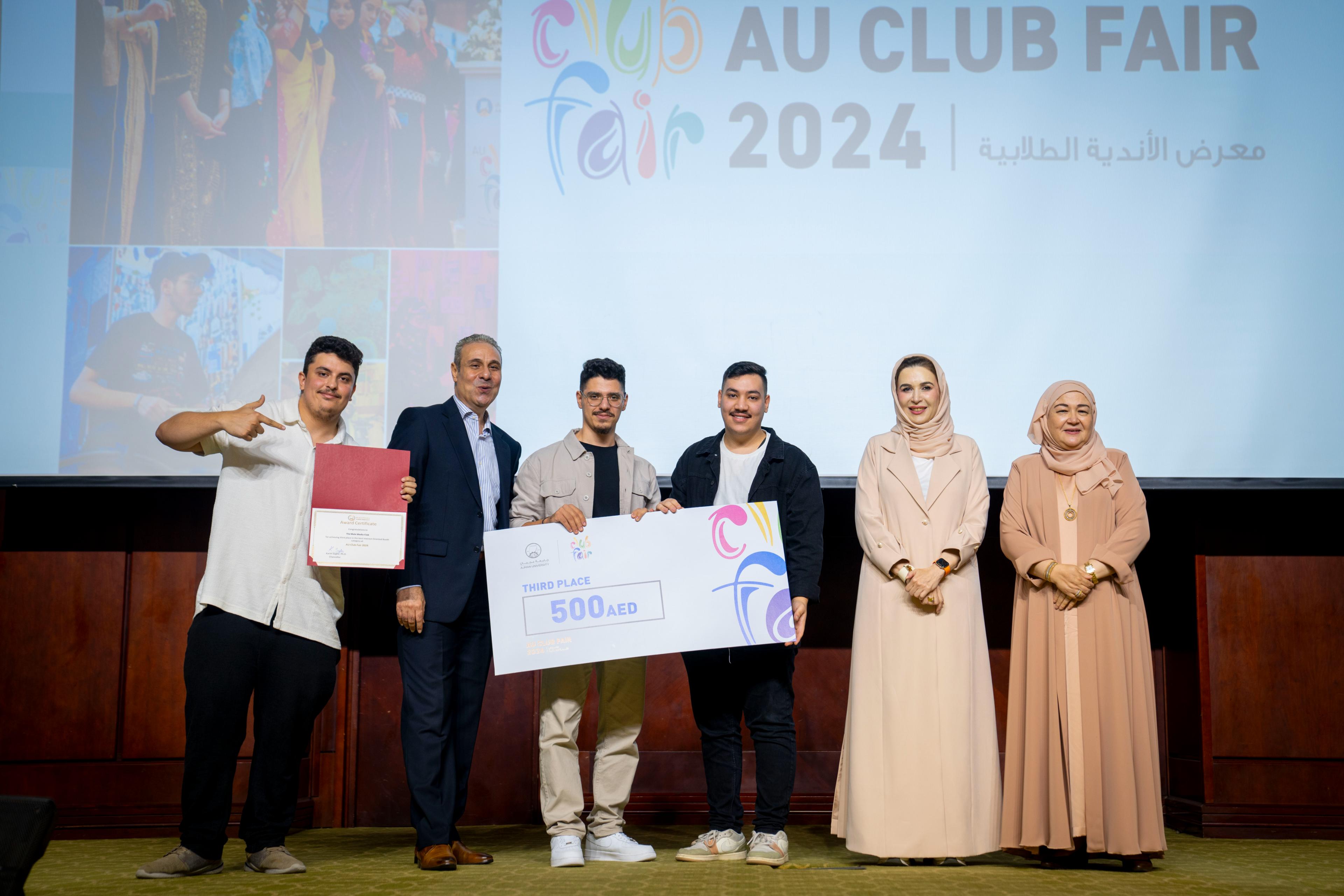 Interest-Oriented Clubs for Female Students: The Cooking Club received the Commitment Award, the AU Car Club won the Teamwork Award, the Civil Engineering Club earned the Creativity Award, and the Pediatrics Club claimed the Innovation Award. The Marketing Club was awarded the Marketing Award, and the Architecture Club was honored with the Initiative Award.