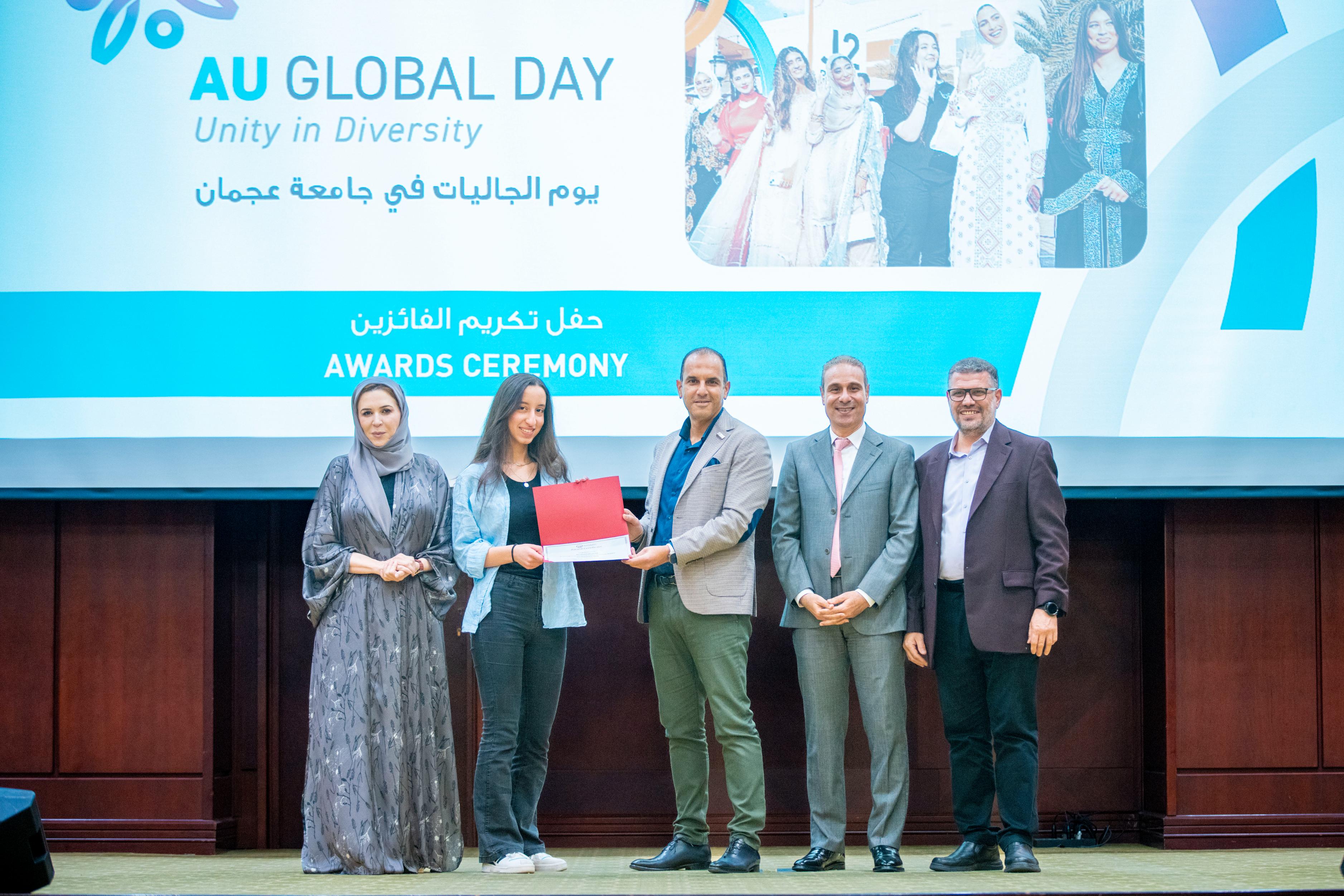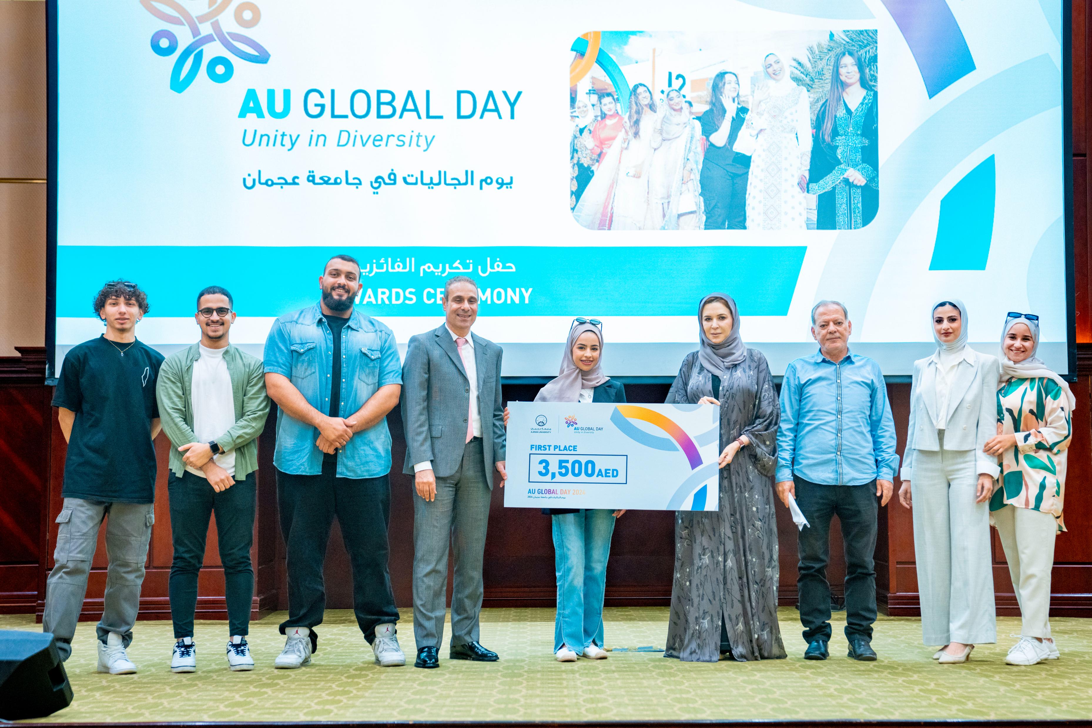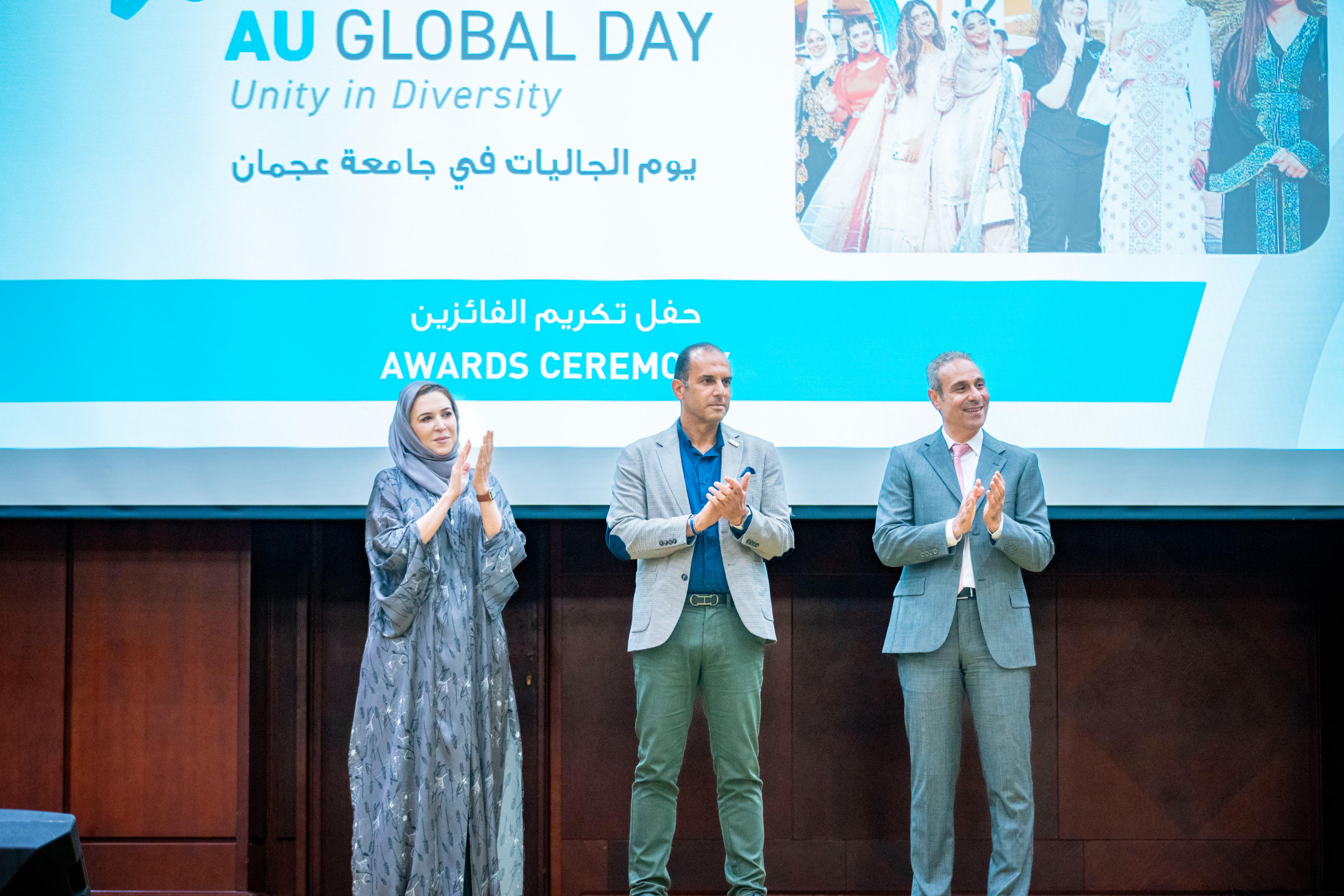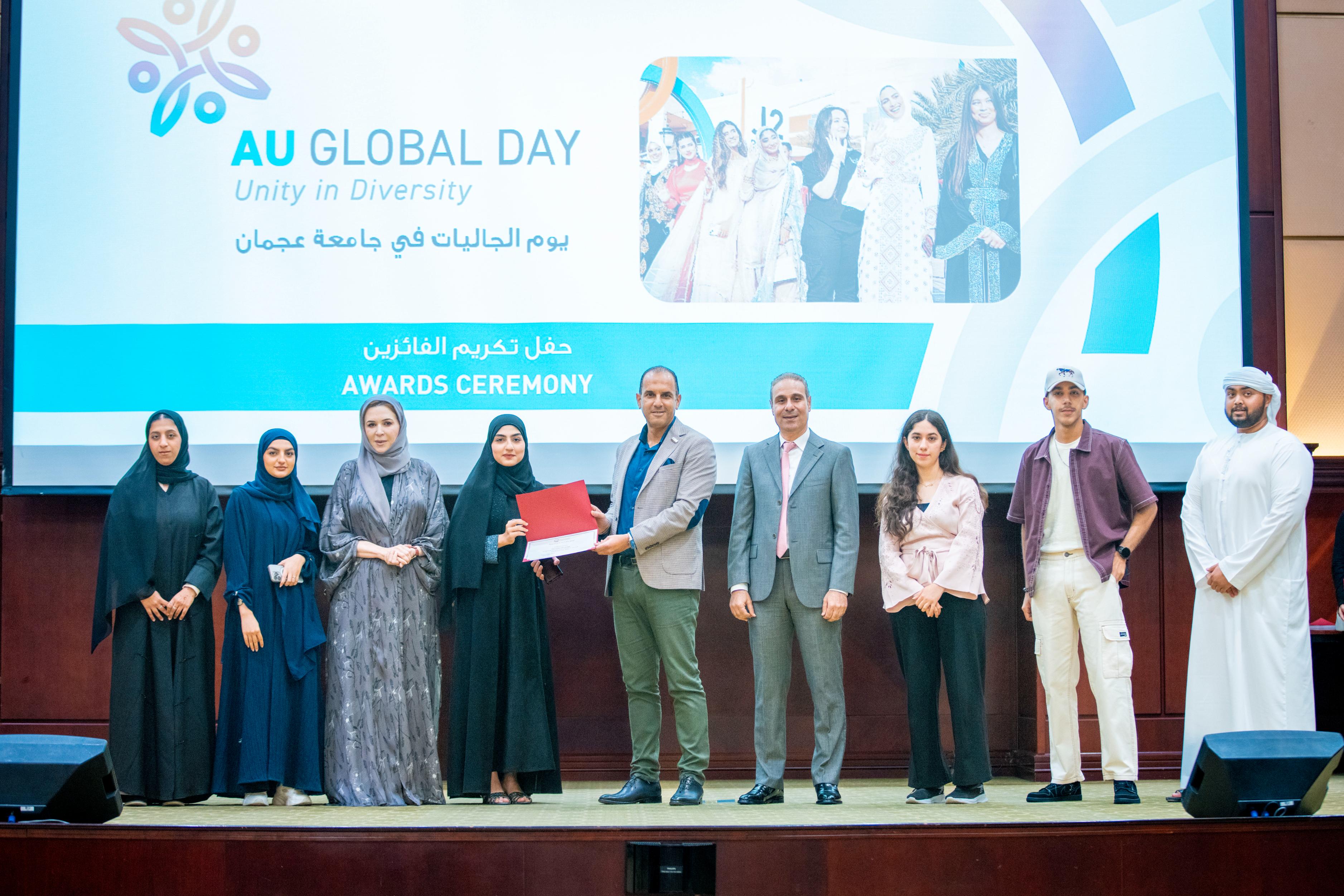 The Office of Student Life at Ajman University organized an event to honor the winning clubs on AU Global Day 2024 across various categories. Dr. Karim Seghir, Chancellor of Ajman University, honored the winning clubs in the presence of Dr. Nahla Al Qassimi, Dean of Student Services, and Dr. Mohamed Helal, Director of Student Life.