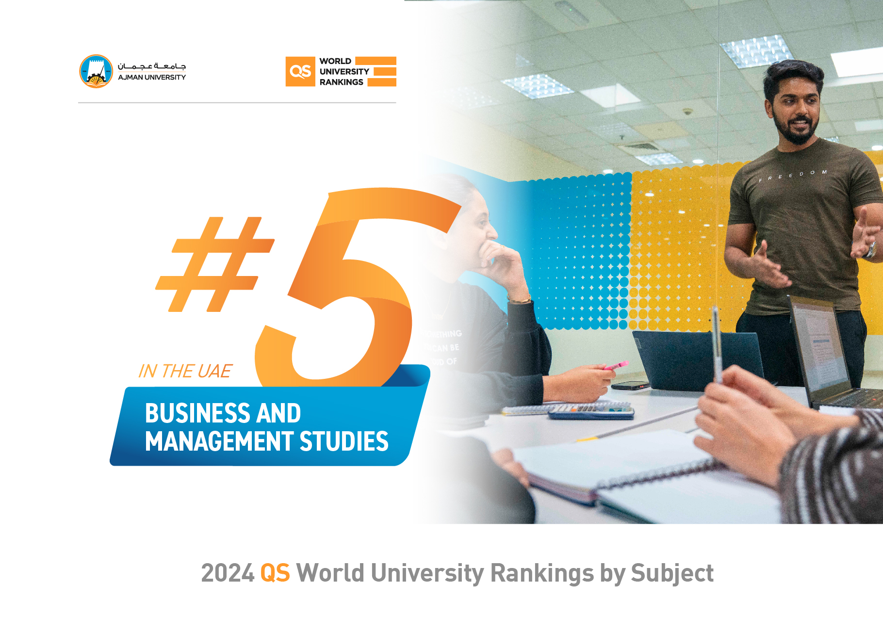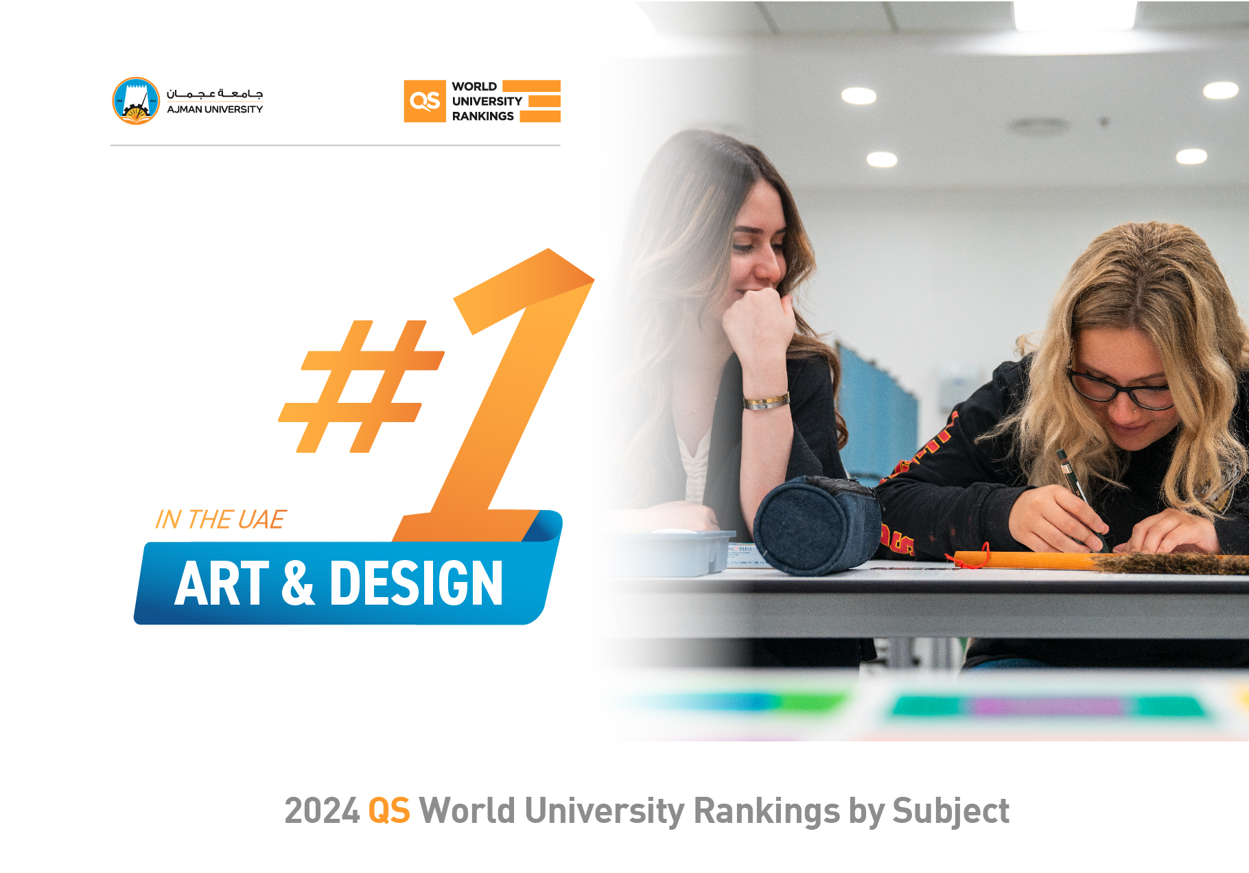We are excited to announce that Ajman University was ranked as the #1 University in the UAE for Arts & Design, and Pharmacy & Pharmacology, as per the recently released QS World University Rankings by Subject, 2024.