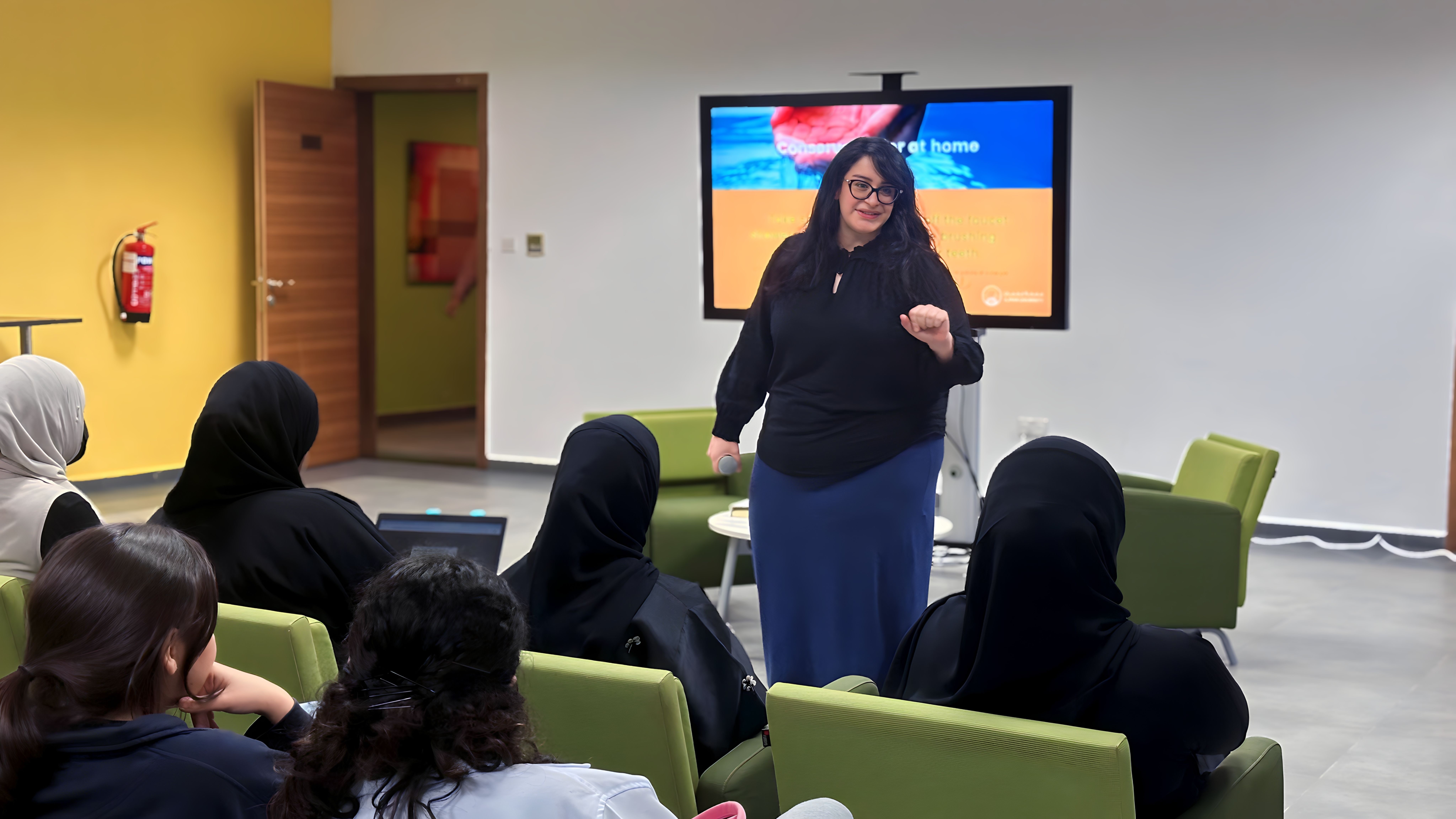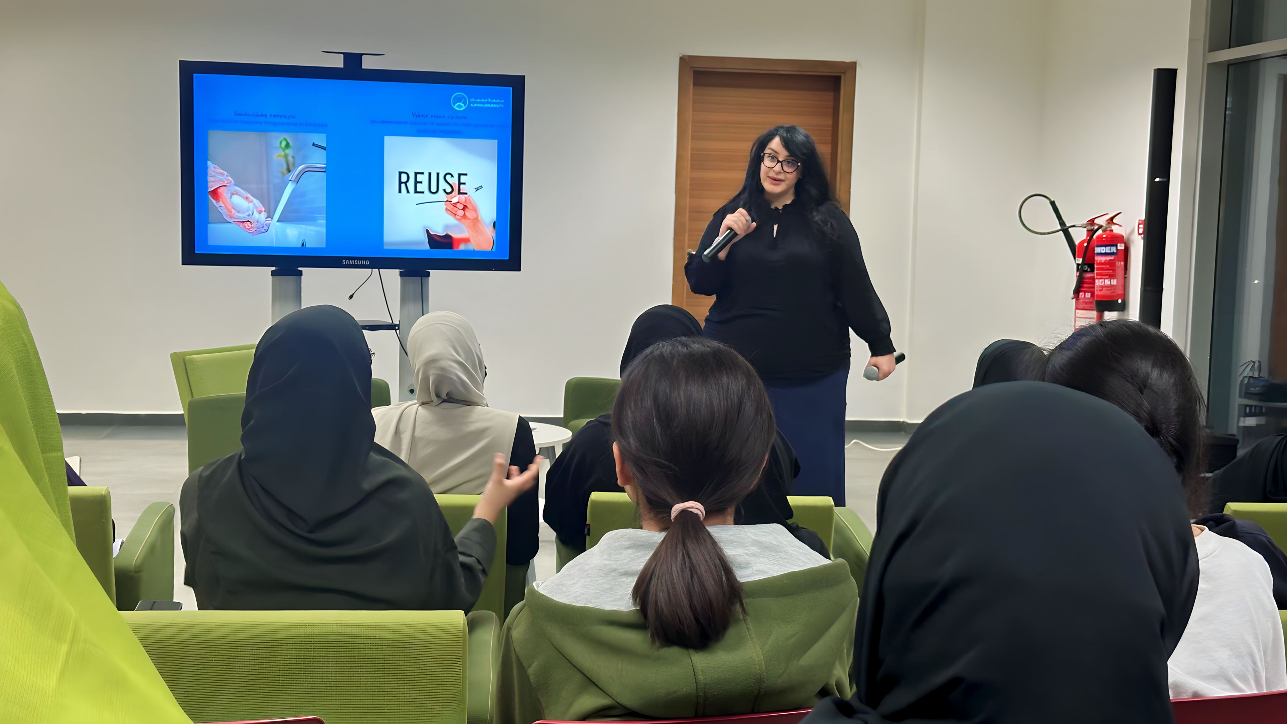 The Office of Sustainability at Ajman University, in collaboration with the Office of Student Housing, organized a workshop titled "Clean Water and Sanitation." The workshop, presented by Ms. Maya Haddad, the Sustainability Manager, aimed to emphasize the importance of clean water and sanitation practices while promoting sustainable approaches to water resource management.