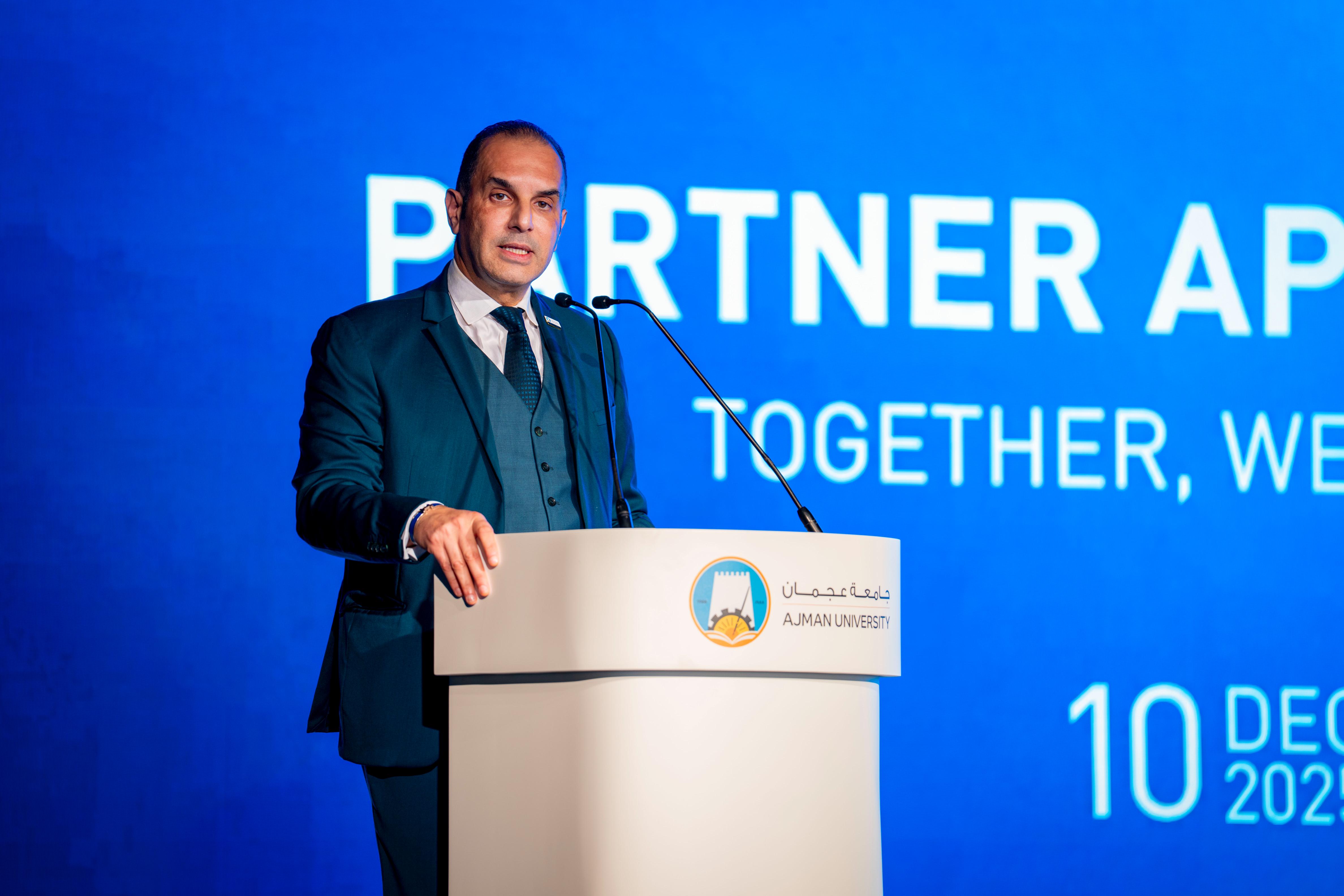 In his welcome address, Dr. Karim Seghir, Chancellor of Ajman University, conveyed the University’s appreciation for the enduring collaboration with its partners. He stated that AU’s transition to a non-profit model is driven by its mission to empower learners and contribute to national development. He emphasized that strong, cross-sector partnerships form an essential foundation for aligning academic programs with national priorities and future workforce needs.