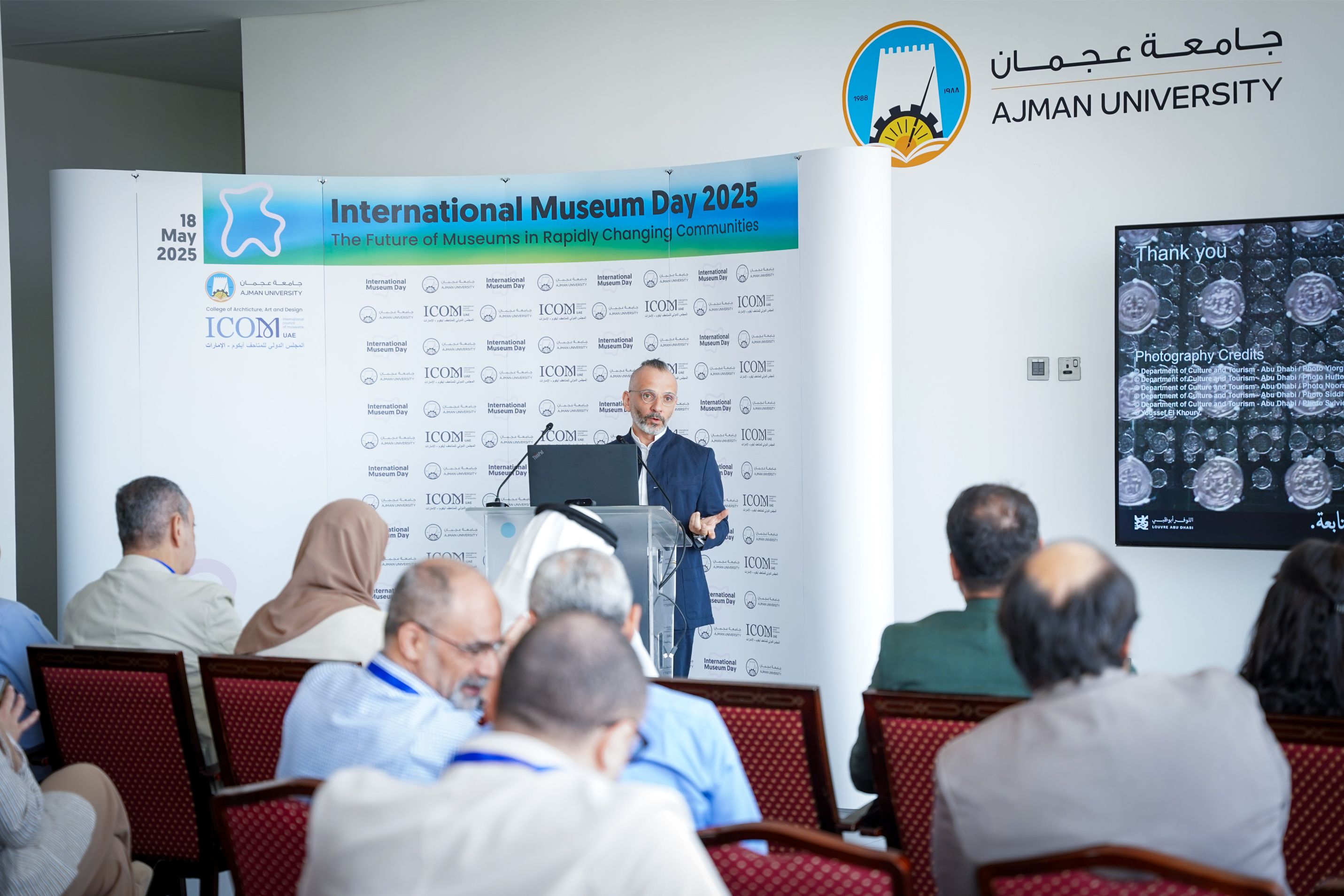 Ajman University’s College of Architecture, Art and Design hosted the 2025 International Museum Day Forum in collaboration with the International Council of Museums – UAE (ICOM-UAE), as part of the Memorandum of Understanding signed between the two parties.