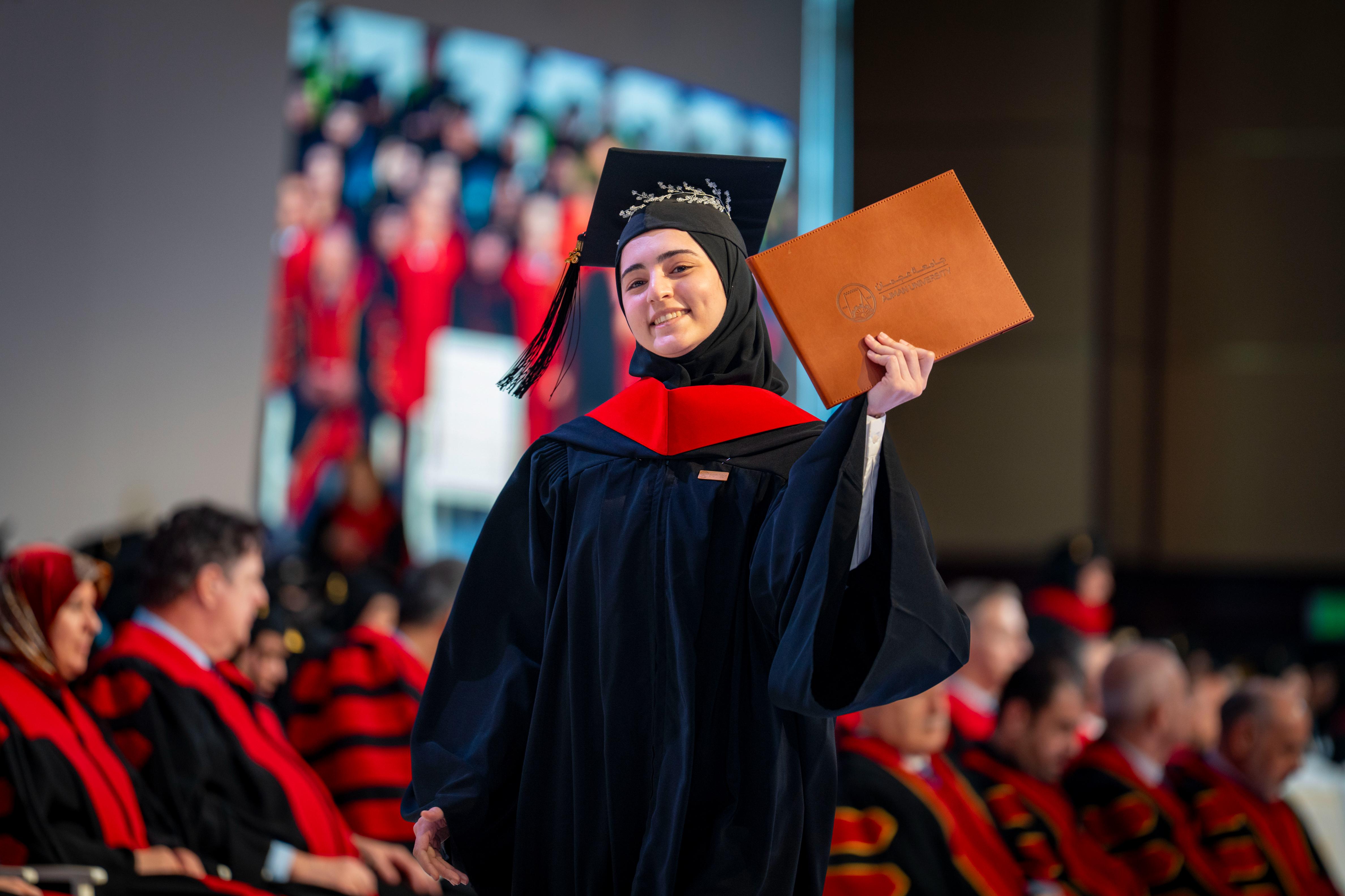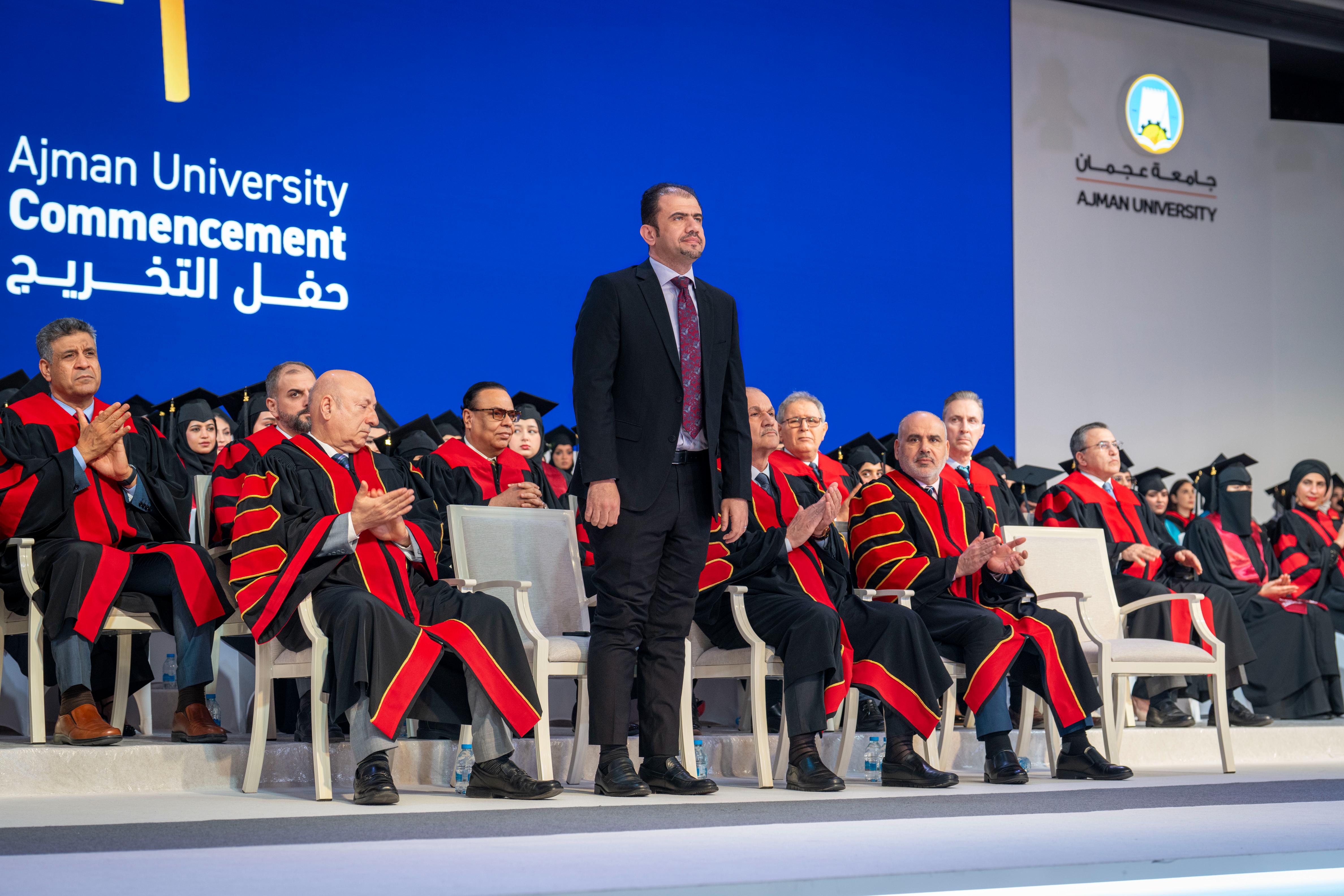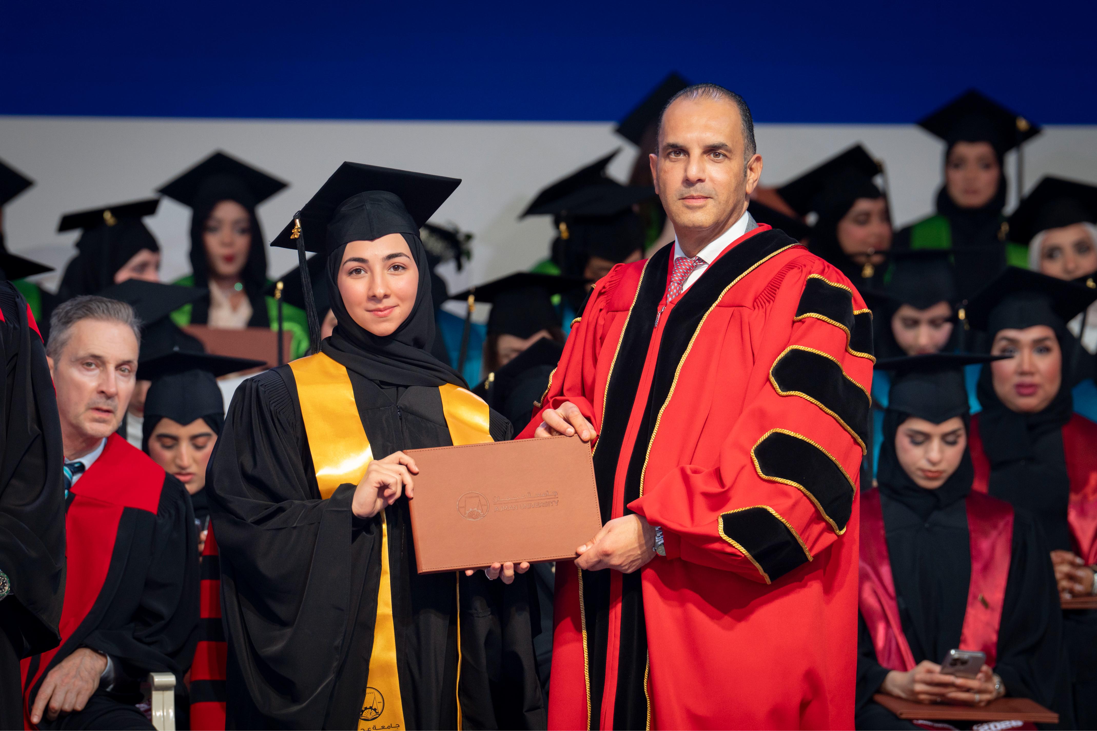 She extended thanks and appreciation to His Highness Sheikh Humaid bin Rashid Al Nuaimi, Member of the Supreme Council and Ruler of Ajman, for his continued support of the education journey, his tireless efforts in enhancing Ajman University’s standing at the regional and international levels, and his commitment to nurturing creative minds and motivating them to continue on the paths of knowledge and learning.