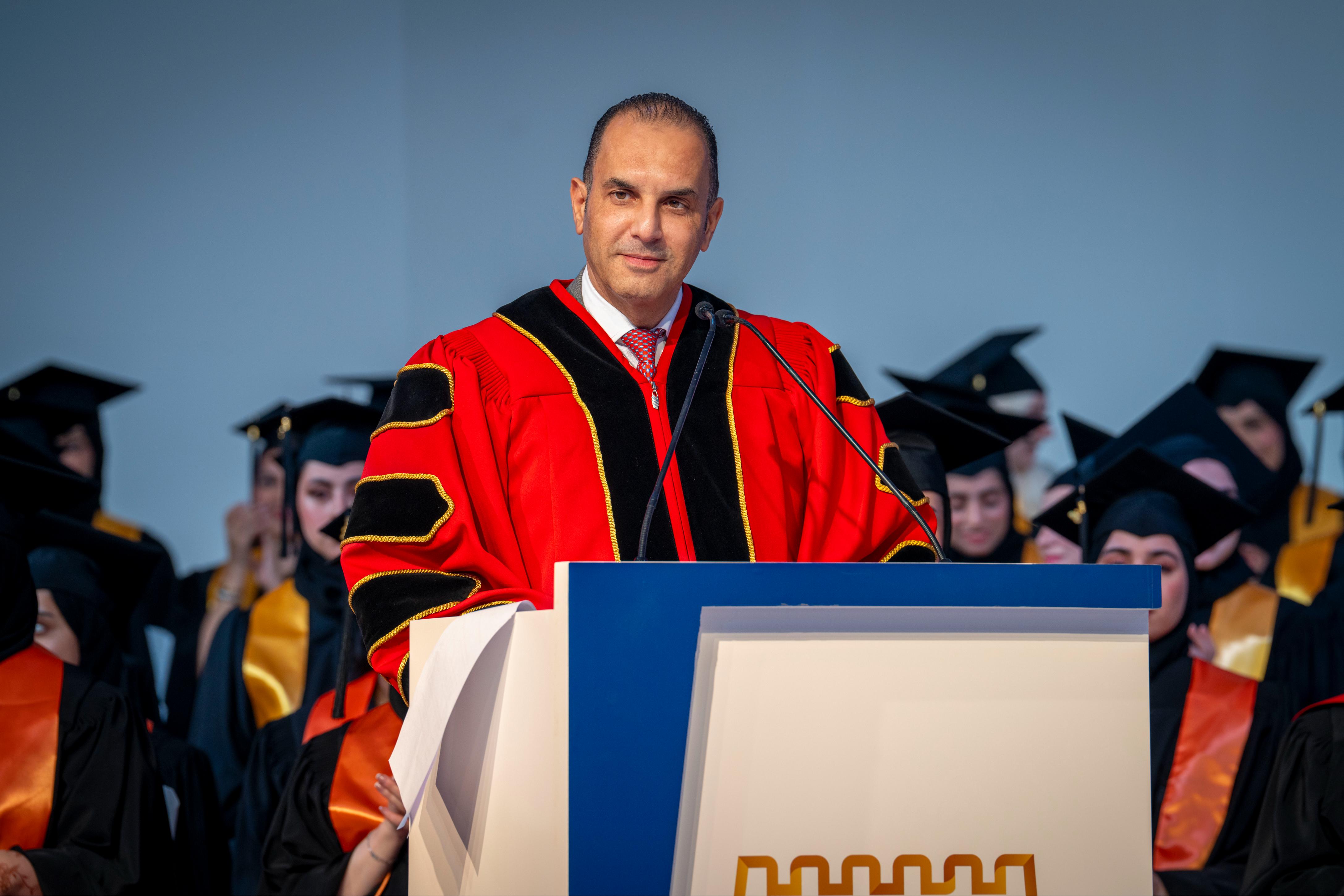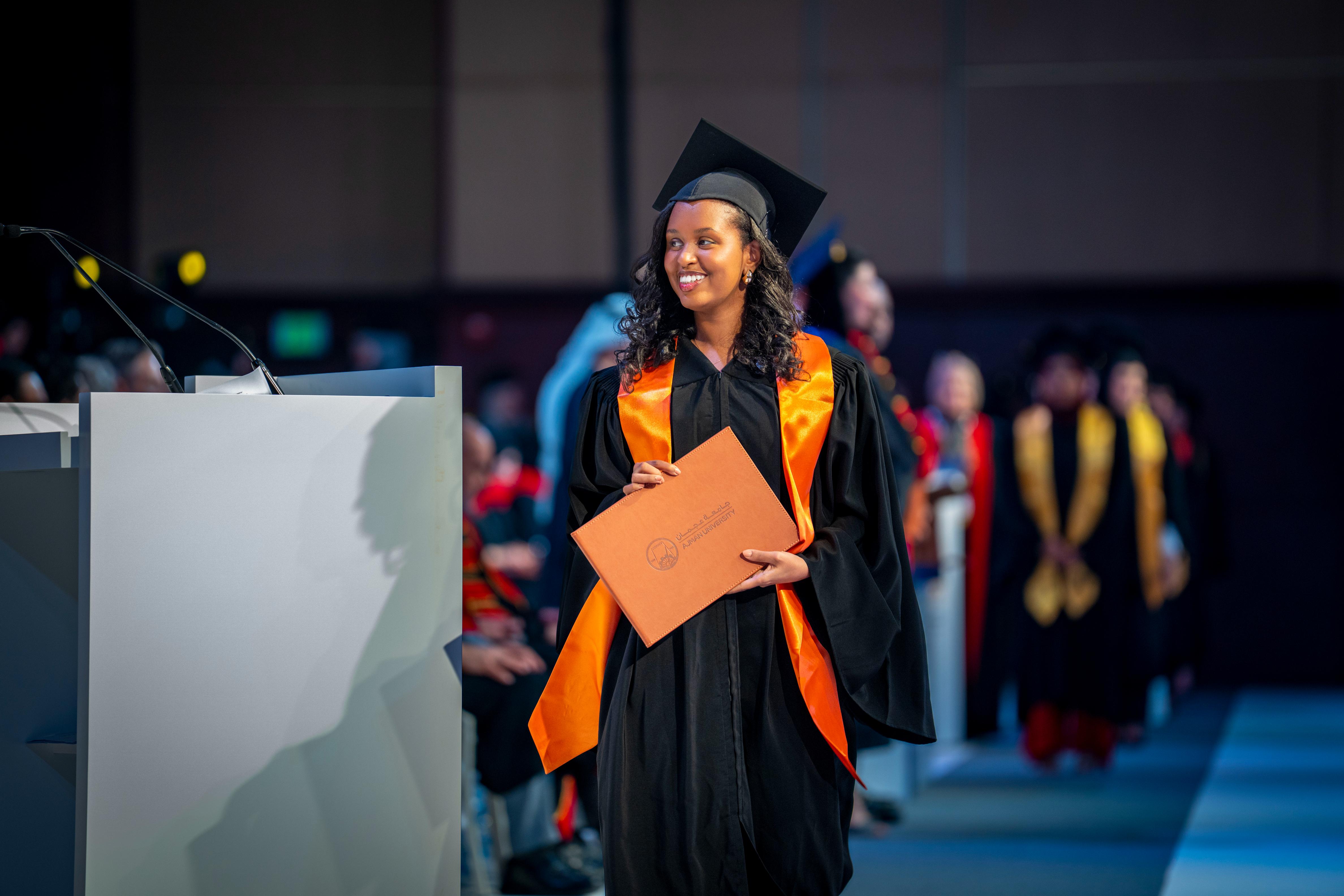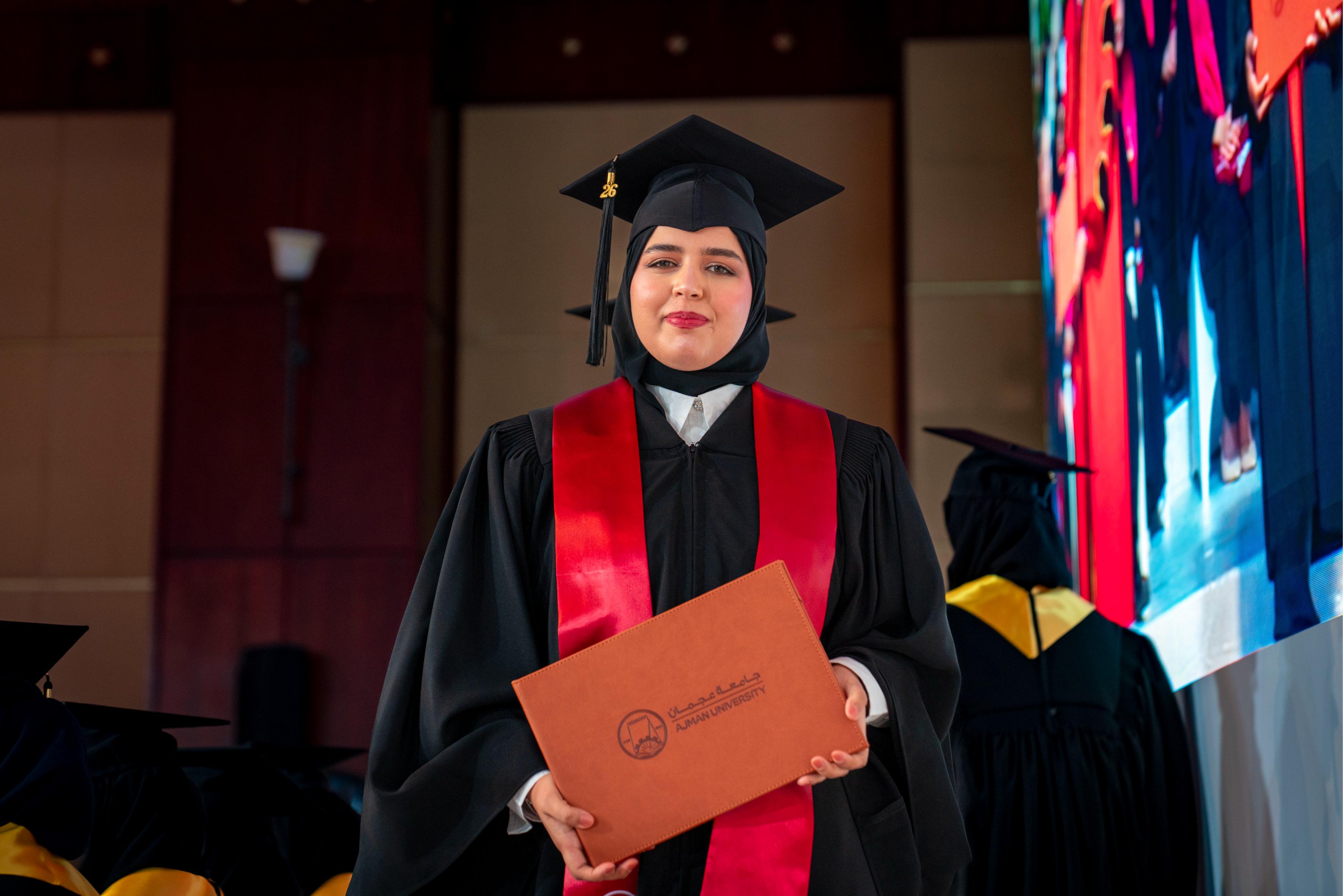 She extended thanks and appreciation to His Highness Sheikh Humaid bin Rashid Al Nuaimi, Member of the Supreme Council and Ruler of Ajman, for his continued support of the education journey, his tireless efforts in enhancing Ajman University’s standing at the regional and international levels, and his commitment to nurturing creative minds and motivating them to continue on the paths of knowledge and learning.