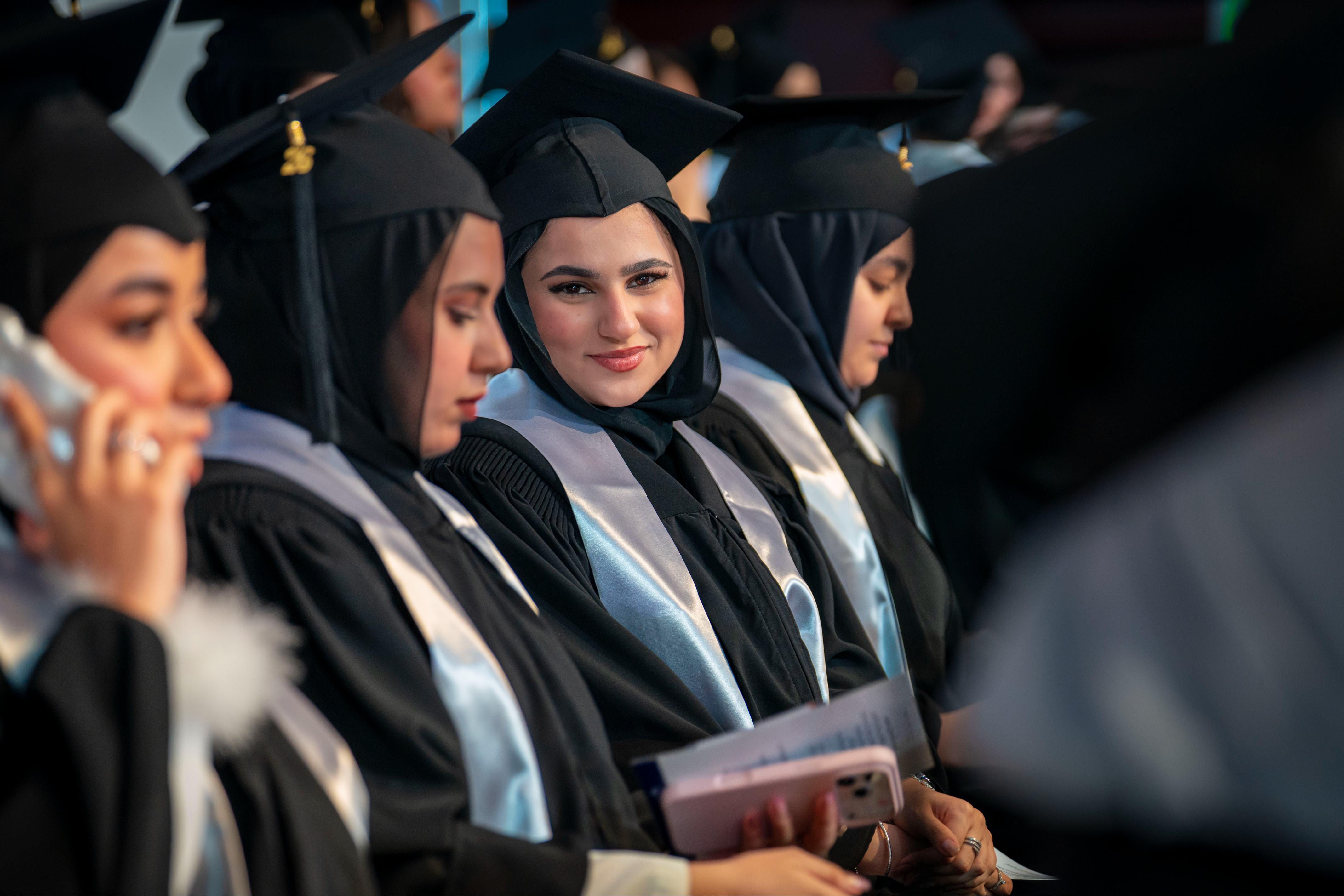 She congratulated the graduates on the effort and diligence they exerted throughout their years of study, praising their determination and persistence in achieving their ambitions, and affirming that they represent an honourable model and source of inspiration for ambitious young women striving for excellence and success in various fields.