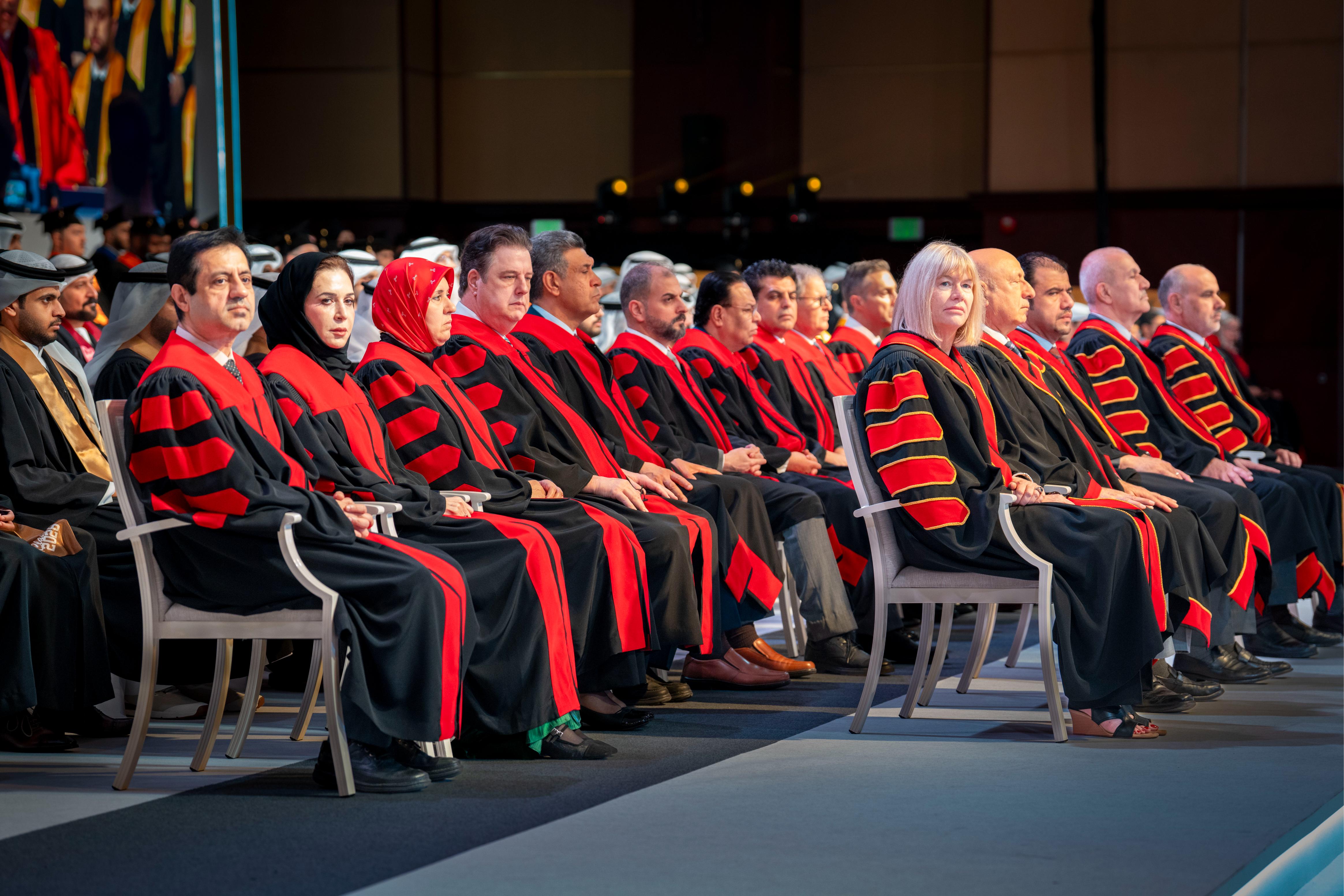 The ceremony commenced with the arrival of the Ruler of Ajman and the Crown Prince of Ajman, followed by the UAE national anthem, a recitation from the Holy Quran, and a video presentation showcasing the university.