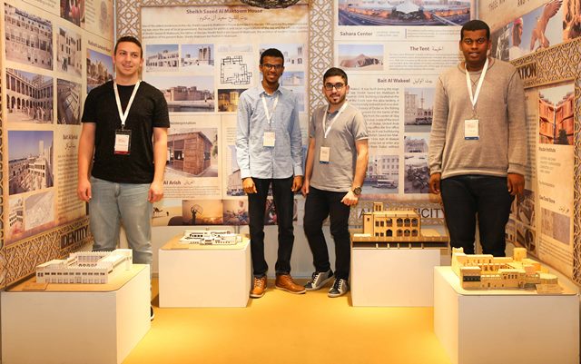 In the exhibition held on the sidelines of the conference, Ajman University pavilion visually stood out amongst others. Themed around architectural heritage Ajman University presented many projects and architectural models that reflected the theme and relentless efforts exerted by the students. The work was conducted under the supervision of Dr. Bouzid Boudiaf and Mrs. Sahr Makky who encouraged the students to utilize all that they has amassed during their academic tenure at Ajman University