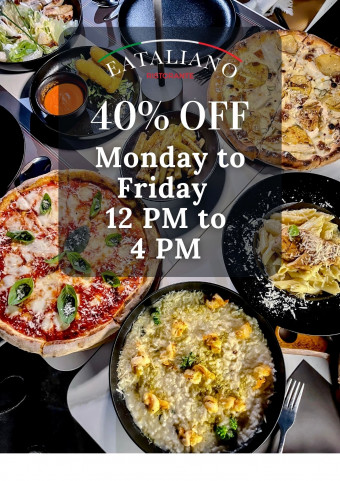 Eataliano offer an exclusive 40% discount on entire menu during lunchtime.