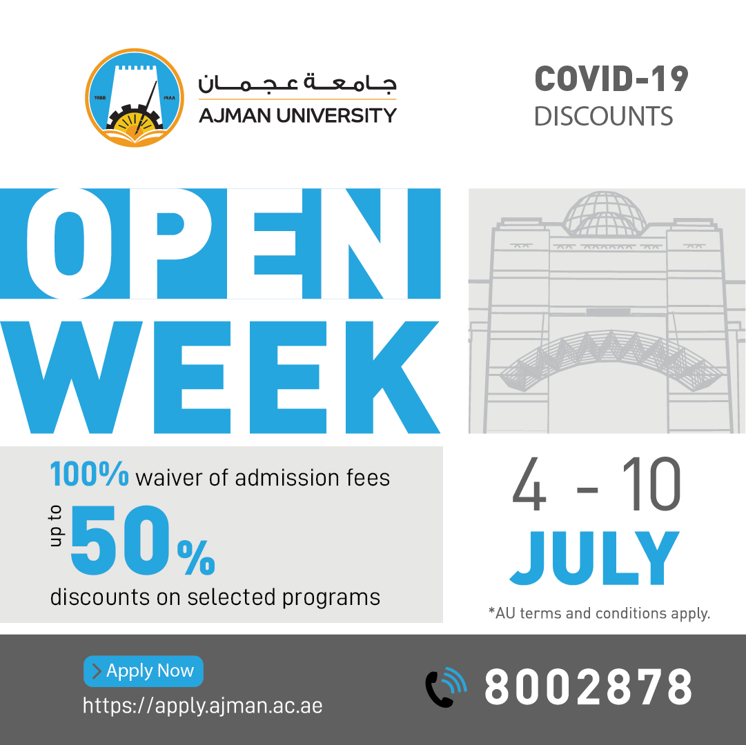 Apply to Ajman University from 4 to 10 July ,2021 and get a:
