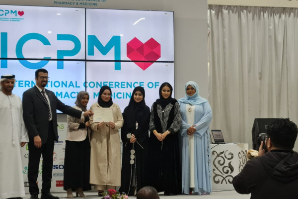 The College of Pharmacy and Health Sciences, Ajman University won prestigious awards at the recently concluded International Conference of Pharmacy & Medicines, the UAE's one of the most functionally important Pharmaceutical & Healthcare exhibition in its 7th edition held in Dubai from 22nd January to 25th January 2023. The pharmacy student Zahraa Imad was awarded the first-Best Innovative Pharmacy Student Poster Award at ICPM under the "innovative" category for presenting a poster titled " Comparative study of antimicrobial effect of metallic nanoparticles". Student was supervised by Dr. Akram Ashames and Co-Supervised by Mr. Sohaib Khan.