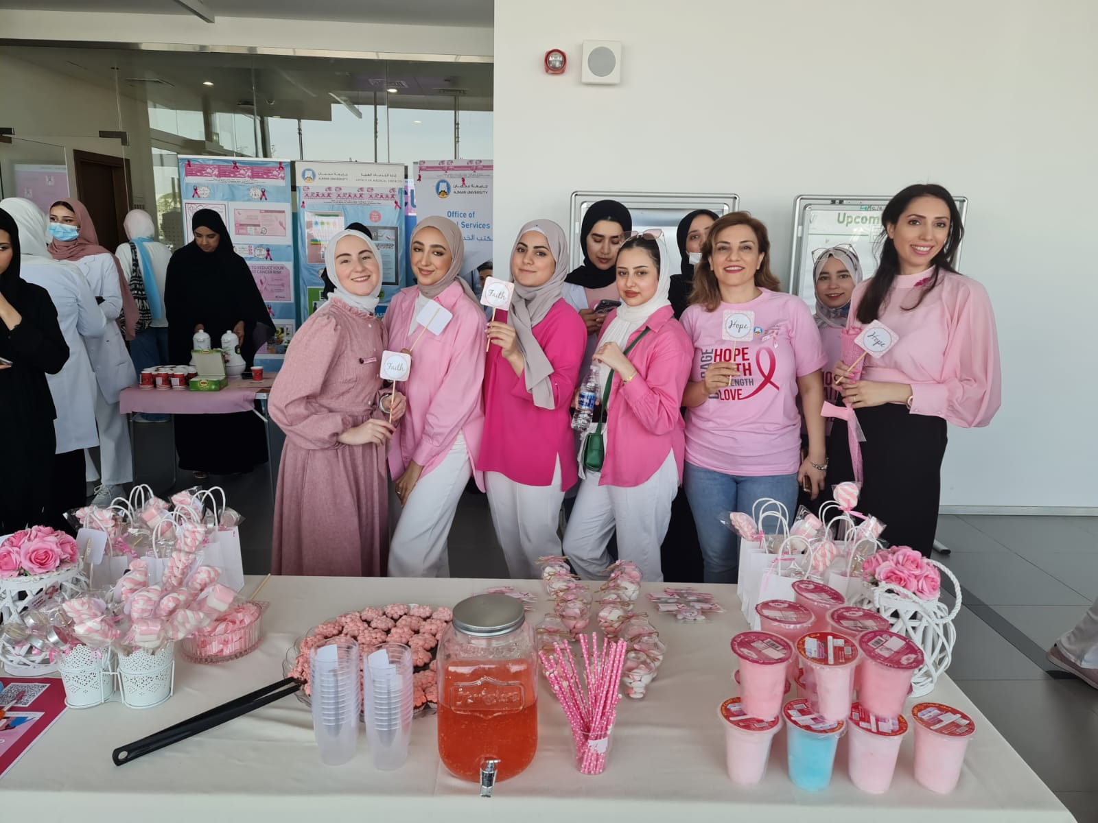 As part of breast cancer awareness activities, the Health and Wellness Club participated in the “Early Detection for Your Protection Event” in association with The office of Medical Services and the office of Students Life. Where the club members provided a lot of information for students about breast cancer, its early detection, symptoms, how to prevent it, phyto-medicines and treatment.